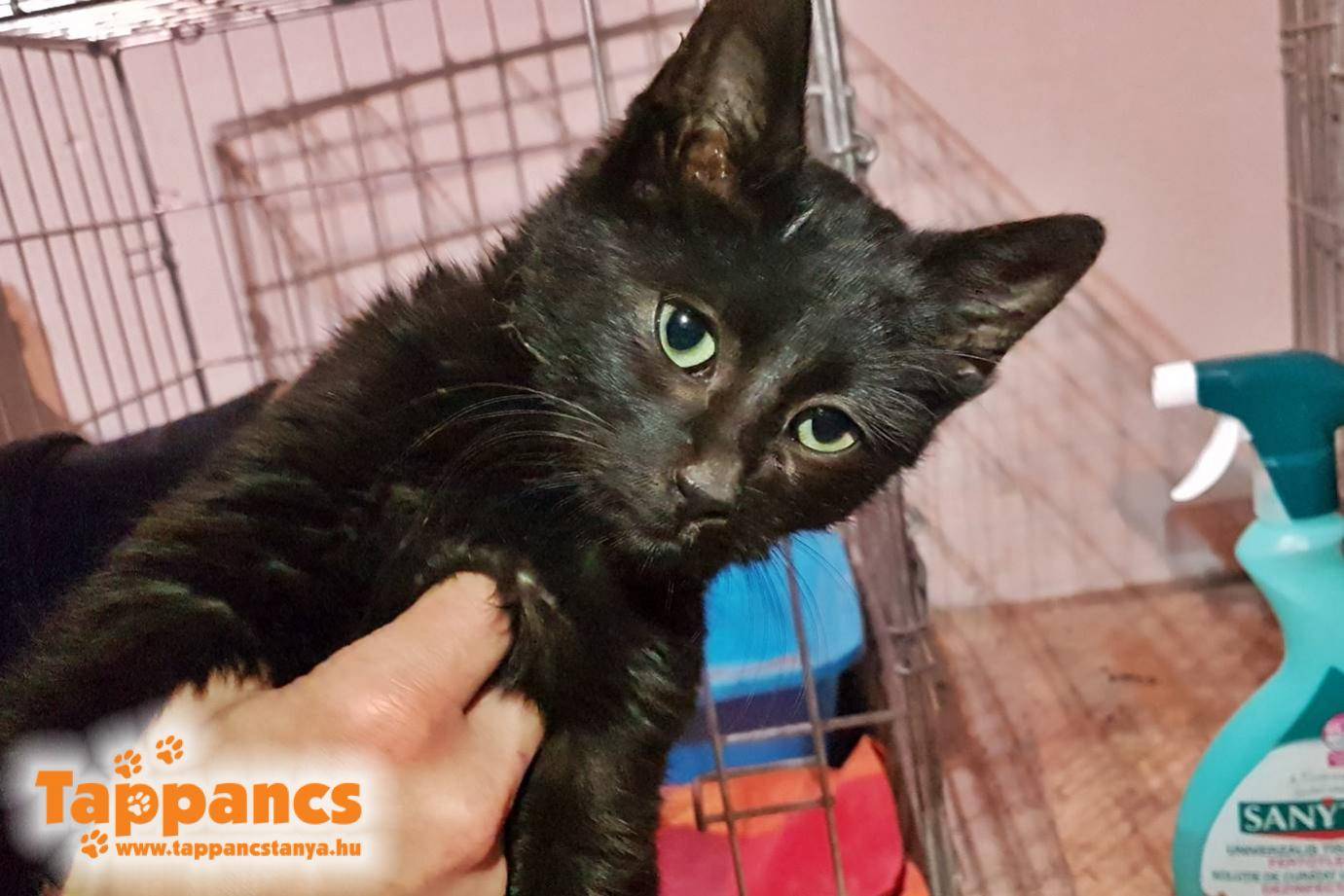 Szintén fekete lakóval bővültünk, ő Sanyi, a dorozsmai hentes előtt kéregető, mindenki cicája. Pár nappal korábban kaptunk hírt róla, hogy oldalán, a bal mellső lábánál óriási lyuk tátong és kilátszik a belső szerve. A bejelentő próbálta megfogni, sikertelenül. Majd másnap ő is újra próbálkozott, de ekkor már többen próbáltak segíteni a cicának. Egyik önkéntesünknek sikerült befognia Sanyit, egy estére elszállásolta, majd szombaton megérkeztek. Sanyit korábban az Utcamacska Project ivartalanítatta, valamint mikor a füle ödémás lett, mi finanszíroztuk fülének kezeltetését, úgyhogy képben voltunk vele kapcsolatban. Önkéntesünk Gabi ismét a segítségünkre volt és elvitte Sanyit dr. Farkas Attila rendelőjébe, hogy megvizsgálja a sebét. A sebe nem olyan vészes, mint ahogy az látszott messziről vagy fotóról, mert nem a belsőszerve látszott ki, hanem a kopasz bőre úgy gyűrődött, hogy sokkal nagyobbnak tűnt az igazi sebnél. Ha minden igaz, más kandúrral történt harcból ered a sérülése. Teszteltettük is, ha már ott volt és sajnos macska aidses ő is, ahogy az utcán élő, vagy kijárós macskák egyre nagyobb százaléka. Sanyi sebét lekezelte a doktor úr, antibiotikum kúrát írt elő. Köszönjük Gabinak a közreműködését!