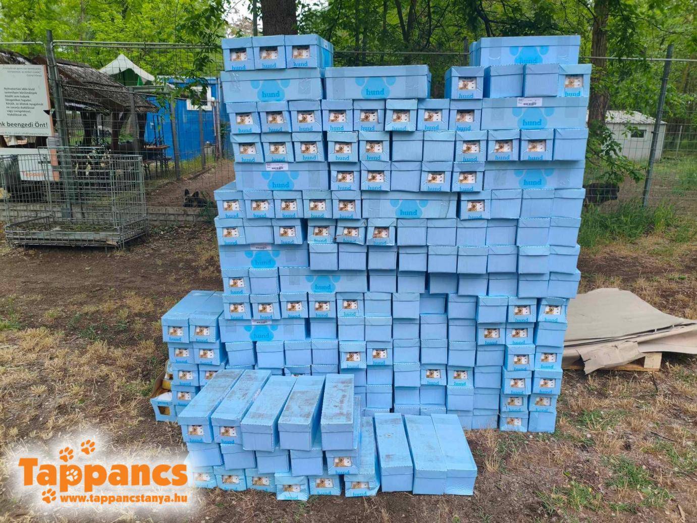 Ma 480 kg alutálcás kutyapástétom érkezett a menhelyre a Szurkolók az Állatokért jóvoltából. Köszönjük a segítséget!