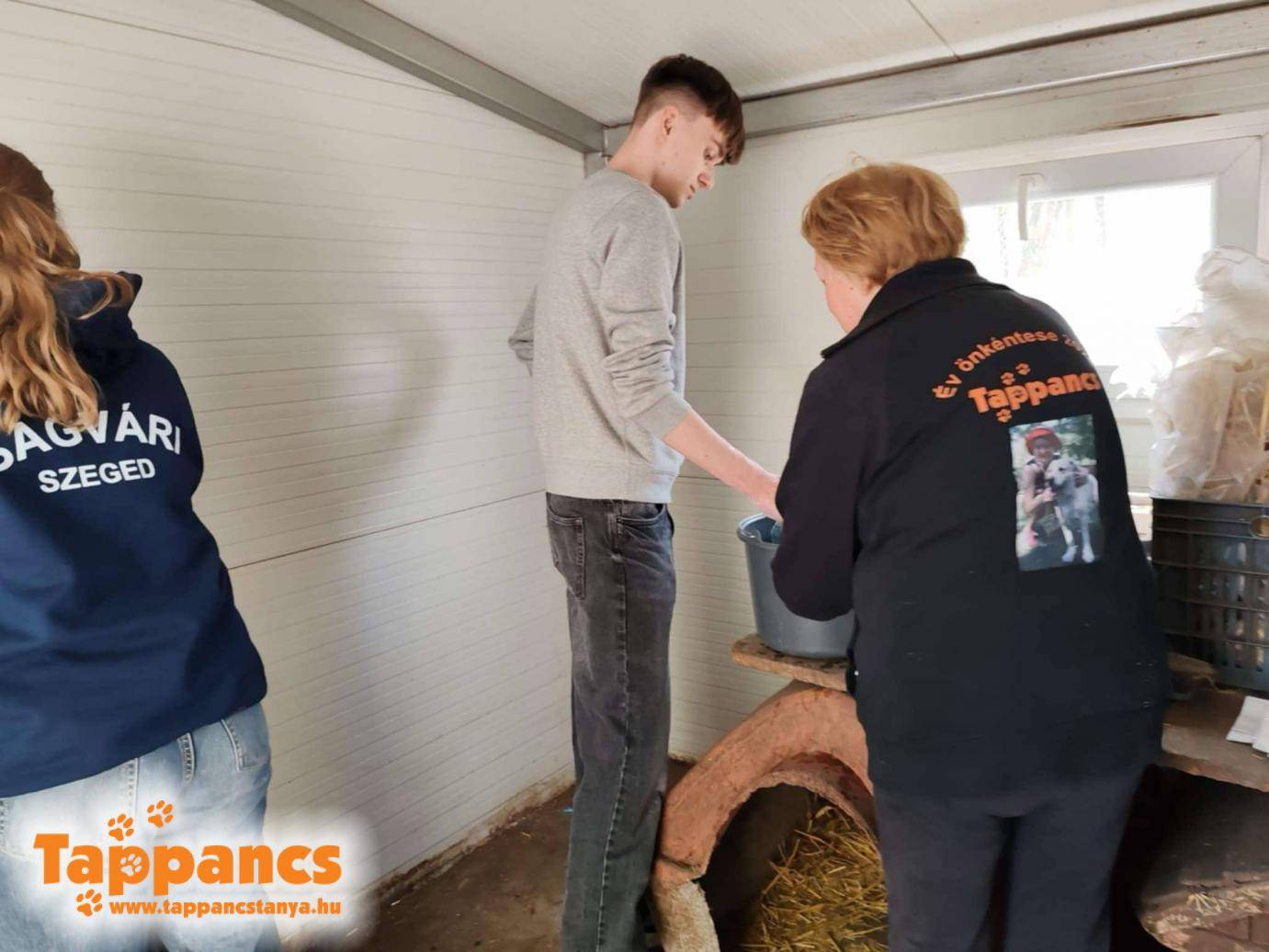 A Szegedi MCC középiskolás programban keretében 9 fő érkezett a menhelyre önkénteskedni. Tekintve, hogy Melinda az évek során már megfelelő rutinra és helyismeretre tett szert, így az önkéntesek koordinálása az ő feladata volt. A két kölykös kennelt takarították ki a hozzá tartozó kis udvarrészekkel. Nagyon szép munkát végeztek! Természetesen a jutalom sem maradt el, a kiskutyàk igazán hálásak voltak, és azt ki is mutatták.