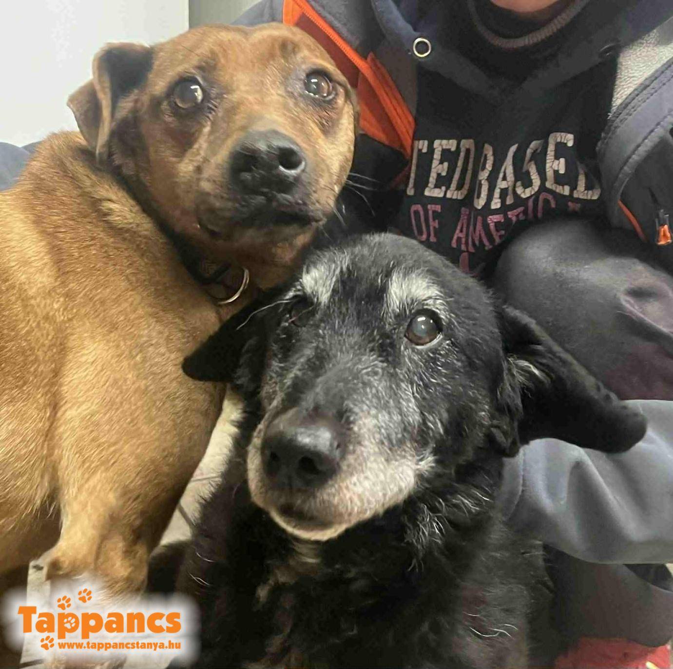 Sem emberekkel, sem más kutyákkal nem volt eddig konfliktusa, amióta beköltözött. Az alábbi fényképen két veterán kutyánk, Buksi és Stefán látható.