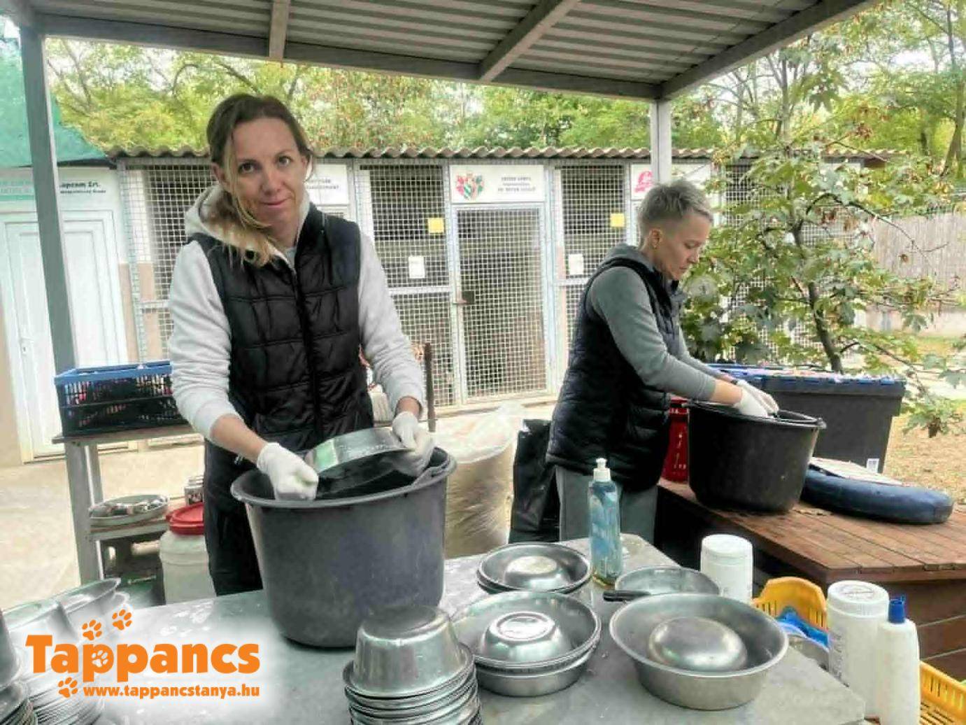 Délelőtt a Lufthansa Systems Hungaria Kft néhány lelkes munkatársa látogatott ki a menhelyre, hogy egy kicsit besegítsen a napi teendőkbe. Mosogattak, másnapra eledelt készítettek elő, gereblyéztek, a kölykös kenneleket takarították ki. Melinda önkèntesünk most is a segítsegünkre volt az önkéntesek koordinálásában.