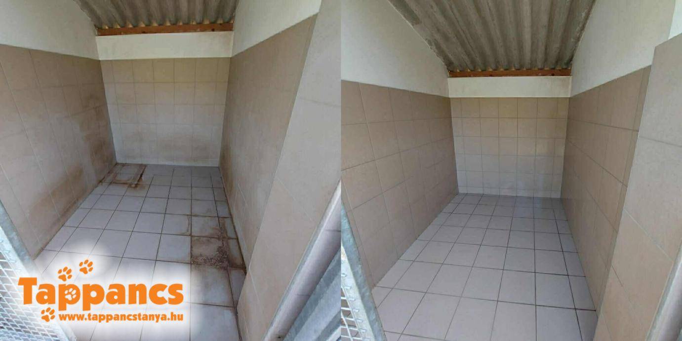 Ma Karcher Snooker Clean Kft a karantén tisztításához fogott neki. Tekintve, hogy a szennyeződés nagyon vegyes, így feladta a leckét az egyébként nagyon tapasztalt szakembereknek is. Ugyan nem jutott minden kennelre idő, de az egész napot nálunk töltötték. A különbség pedig önmagáért beszél!
