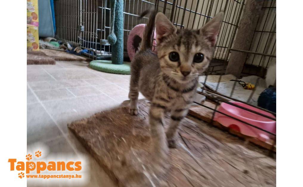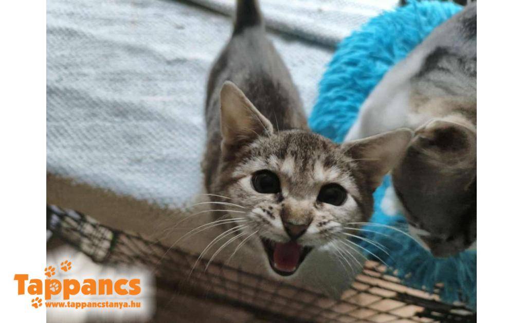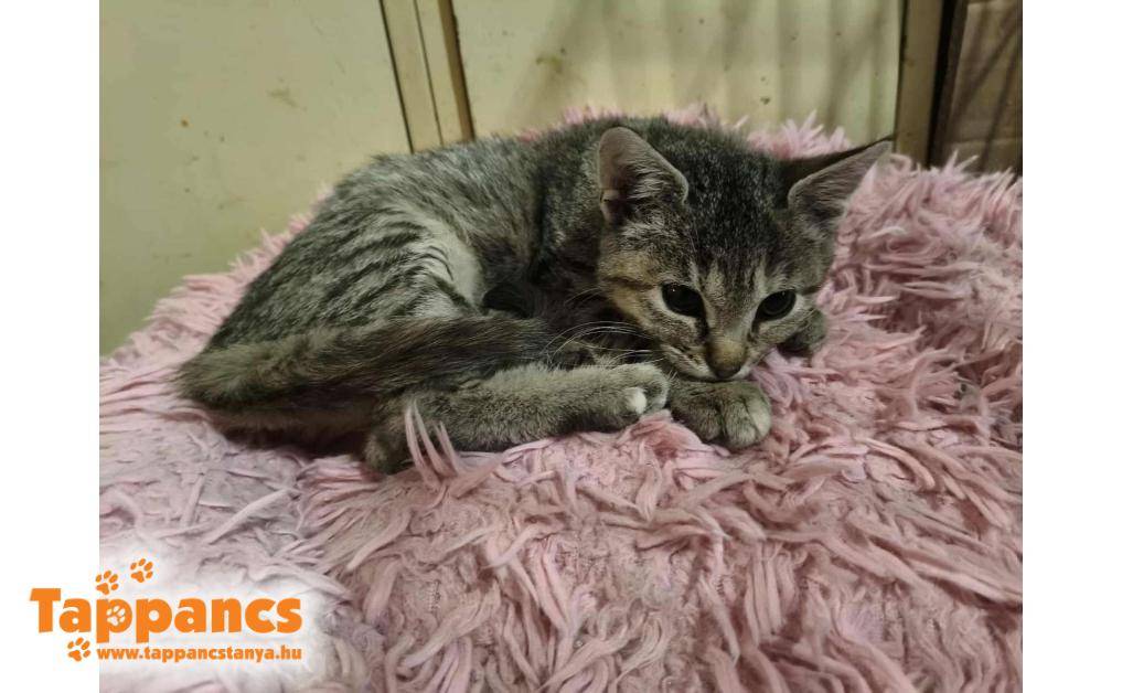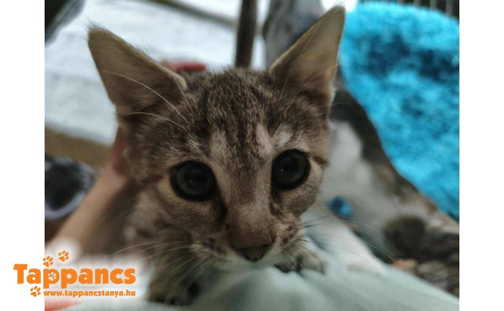 Hétvége reggelén Lili gondozónk a kutyusaival sétált, mikor felfigyelt egy kis valami dudorra az úton. A kietlen ösvényen egy még élő babacica feküdt, a világáról sem tudott. Kb. 3 napos lehetett, a szája tele volt homokkal. Nyilván nem tudta ott hagyni ezt a magatehetetlen csöppséget, így ő is az otthonában landolt, saját kis kuckót kapott. A picilány a rengeteg pöttyel a hasán a Babos nevet kapta.