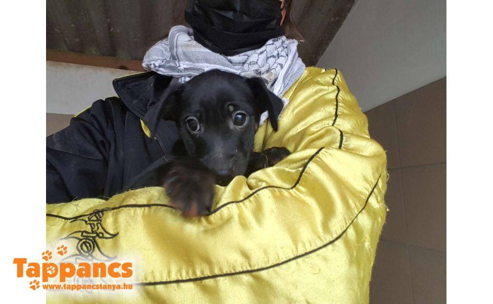 Szatymaz felé, az út mellett egy ládában találták a 4 párhetes kölyköt. Bazsa, Botond és Blacky neveket kapták a fiúk, míg az egy szem szukát Bettire kereszteltük.