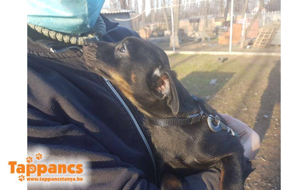 Szatymaz felé, az út mellett egy ládában találták a 4 párhetes kölyköt. Bazsa, Botond és Blacky neveket kapták a fiúk, míg az egy szem szukát Bettire kereszteltük.
