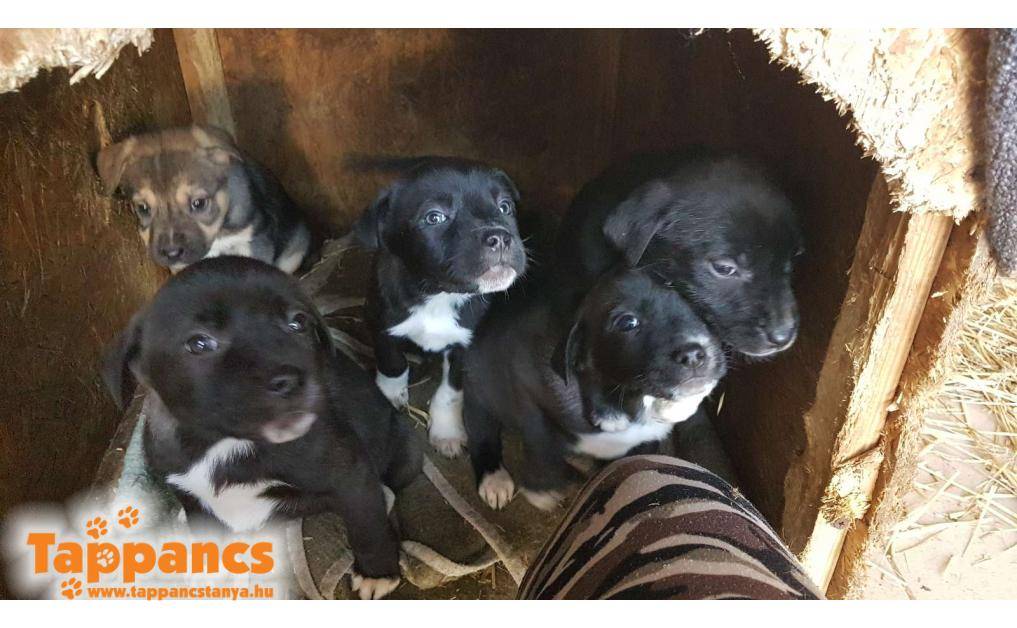 Sándorfalván túl egy erdőben találták őket egy farakás alatt megbújva. Anyakutyát, tanyát, ahová tartozhattak nem láttak a közelben. Nem sokkal korábban dobhatták ki őket. Dina, Dóra, Dana, Dáma és Della nevekre kereszteltük őket.