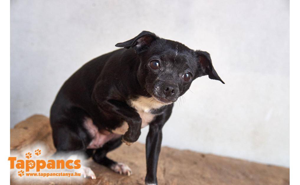 Minikét egy állatszerető hölgy találta a Honvéd téren. Törékeny kis csöppség igen rossz állapotban van. Hatalmas köldöksérve van, karmai pedig órásiak. Chipje viszont nincs. Kálváriája a Kutyamesékben olvasható.