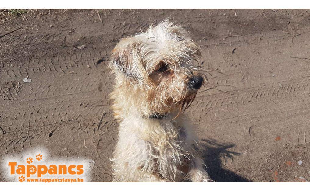 Napokig próbálták befogni az elhanyagolt állapotban lévő, rémült ebet, míg végül sikerrel jártak, és el is helyezték. Sajnos chip nem volt benne. Bár ideiglenes befogadója szerette volna megtartani, de tudta, hogy nem tudja vállalni az esetlegesen magas orvosi költségeket, ezért nehéz szívvel, de lemondott a kutyusról a menhely javára.