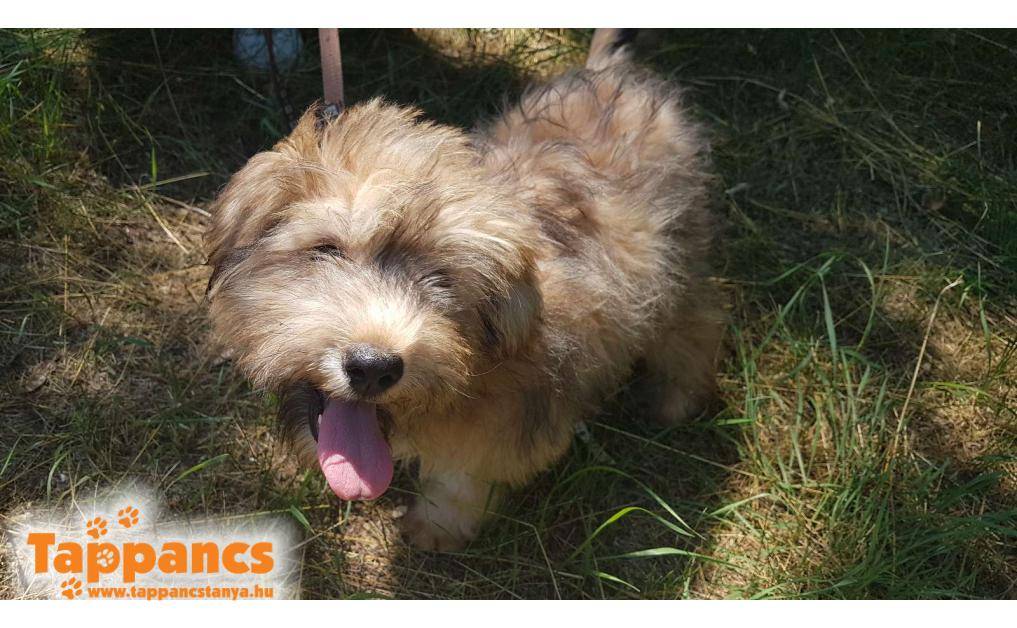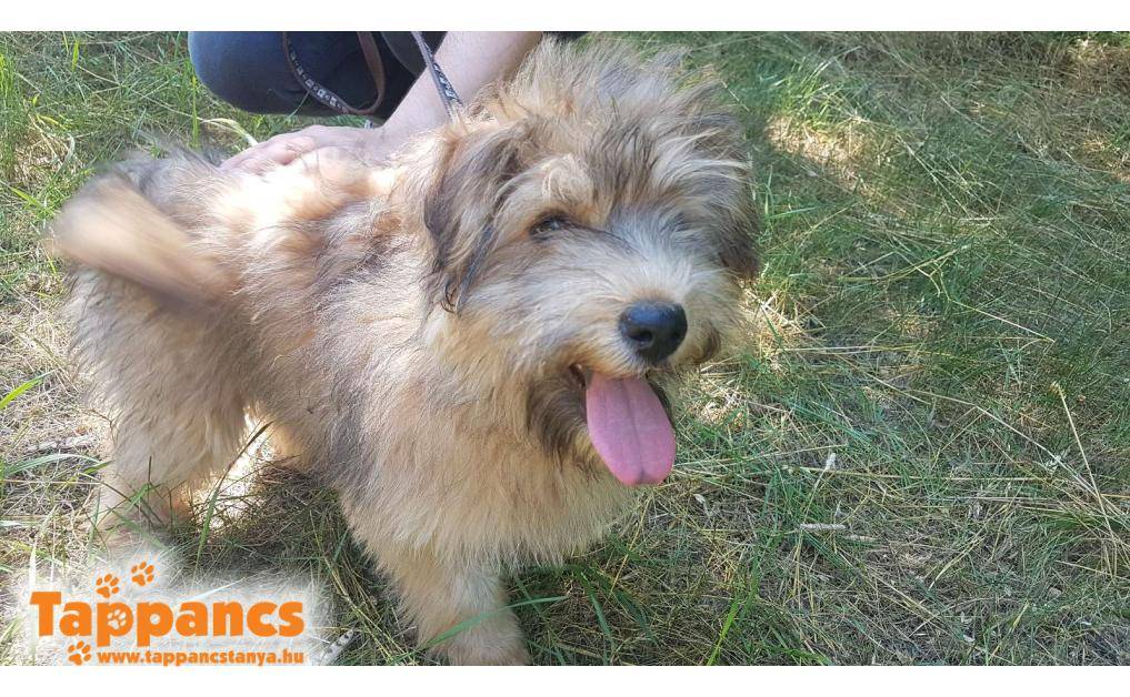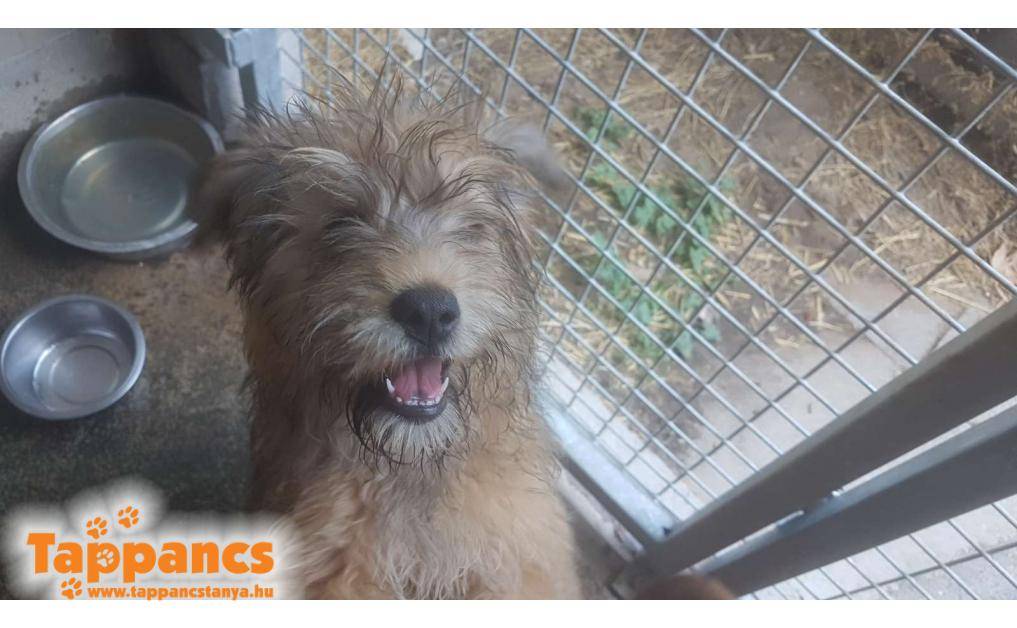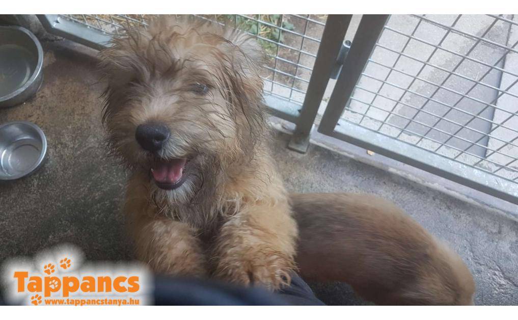 A dorozsmai körforgalom után, Zsombó felé az út szélén találták a kiskutyát.