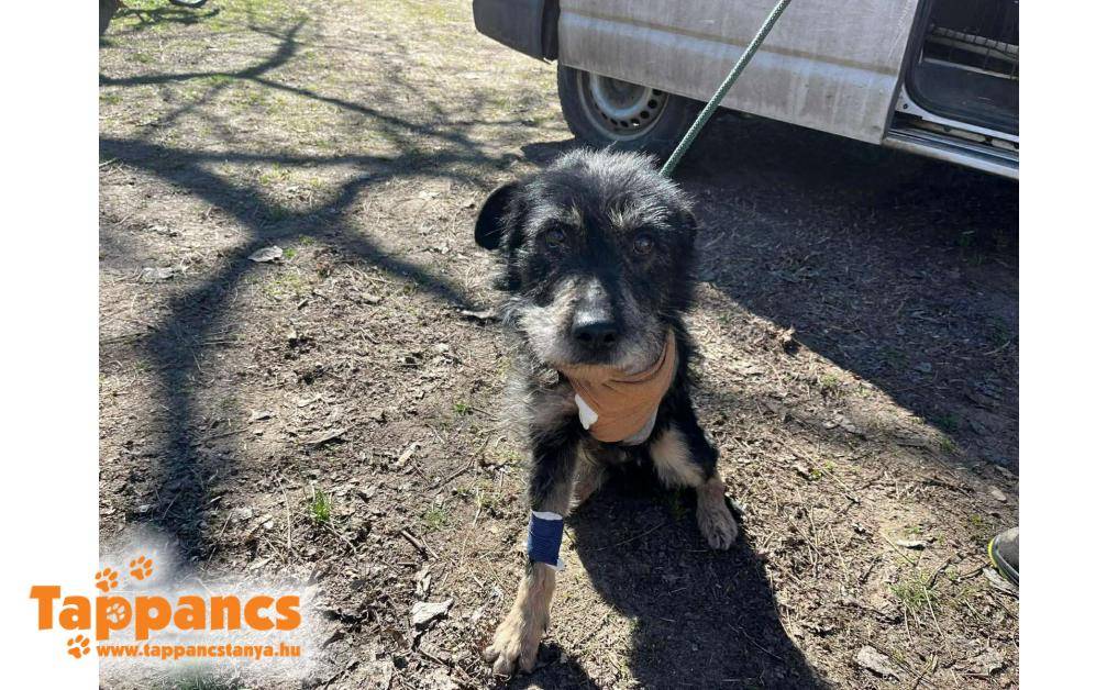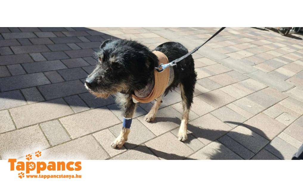 Őszapó, a Magyarcsanádon talált, közepes testű kutya, a bal mellső lábán nyílt alkar haránttörés volt. A sérülés állapota sajnos mindent elárult, és a végkifejletet is: a seb bűzös, a szövetek elhaltak, a lábvége súlyosan duzzadt. A lábát sajnos amputálni kellett. A nyakán körben vastag, régi hegszövet találhat, ami nagy valószínűsségel a tartós kikötés nyoma.
