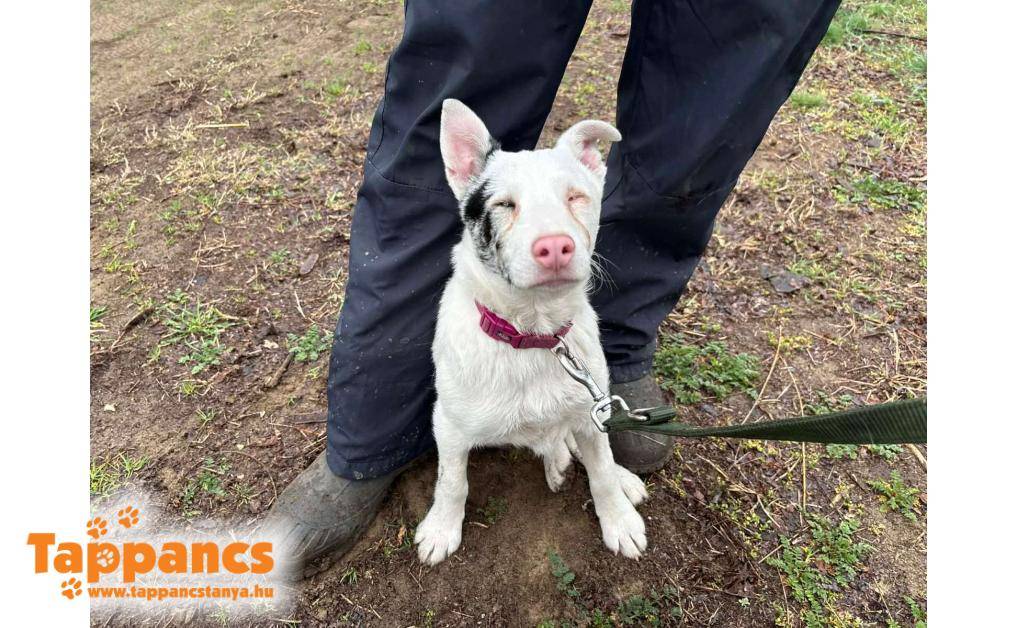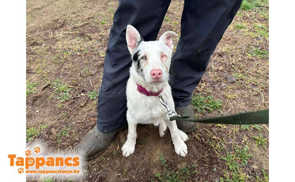 Balástya és Zsombó között az autópálya lehajtónál bóklászott. Vaknak és süketnek tűnik, így szegény nagyon meg volt ijedve. Miután bekerült járt állatorvosnál, és lehet, hogy csekélyen, de hall valamennyit. Bekerülése óta megismeri már a gondozókat, és igazi kis rosszcsont kölyök lett belőle.