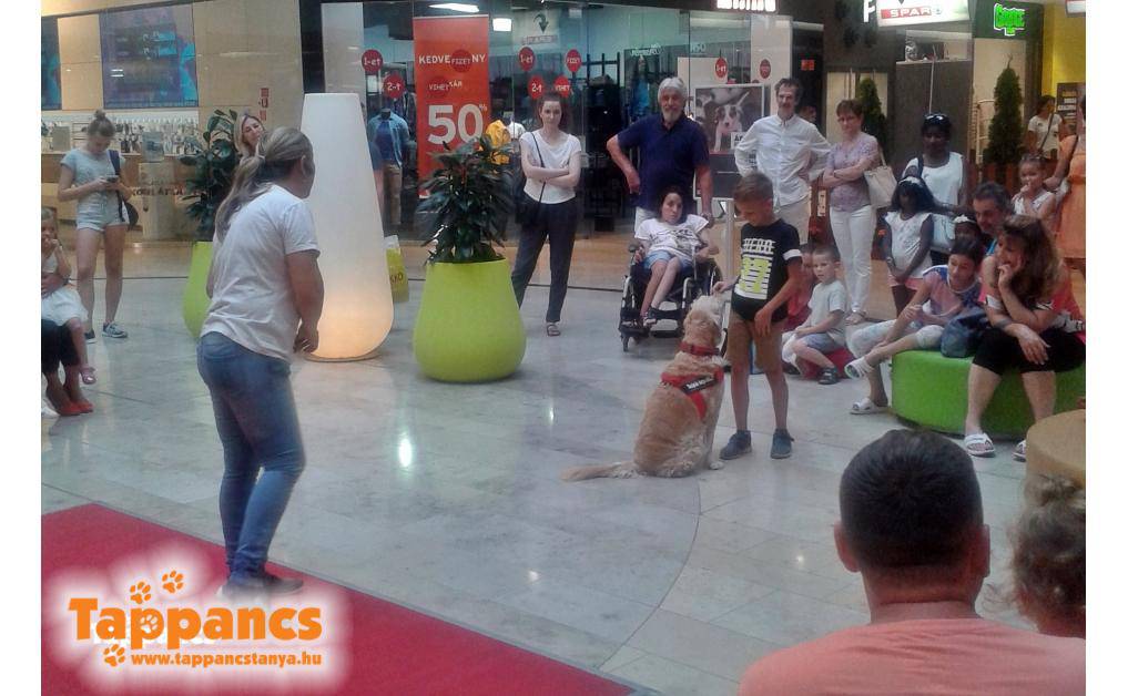 Szombaton Gácsi Mária, habilitációs kutyatréner tartott egy interaktív bemutatót a terápiás kutyákkal, majd a Csibész kutyaiskola töltötte meg az Árkád -1-es szintjét.