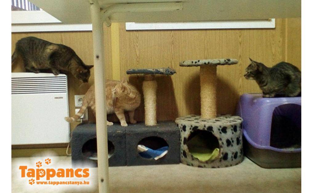 Hétvégén igazán csendesen teltek a napok. Gondoltuk felpezsdítjük kicsit az állóvizet, és felszállítottuk Kázmért. Ébernek is jól jönne egy játszótárs, ő meg aztán nagyon ért ahhoz, hogyan kell bulit kreálni. Azért csendben megjegyezném, hogy a kolónia szobában valaki rendszeresen felkapcsolta a villanyt, miután mi elhagytuk a menhelyet. Valakinek derogált a sötét, pedig macskák, állítólag látniuk kellett volna, de igaza is volt, minek erőlködjön. Az első számú gyanúsított a vörös-márványos bundával megáldott káoszkapitány volt, és mára úgy tűnik a rejtély meg is oldódott, mert azóta senki sem kapcsolgatta a villanyt. Szóval Kázmér képes fényt hozni társai életébe, reméljük hamarosan egy gazdi is megtapasztalhatja ezt. Reggeli előtt érkezett, de sokkal inkább izgatta az új környezet. Amint végeztek a többiek is, Táncos és Csipisz, mint kinevezett fogadóbizottság indult is lecsekkolni az új szobatársukat. Kicsit meg volt szeppenve a nagy legény, de a fiúk nagyon könnyedén beavatták. Majd megérkezett Édes, aki nemrég még együtt lakott vele és azon kacagtunk, amint tudatosult benne, kivel is van dolga, rohant is a szoba másik végébe és kétségbeesetten meredt ránk. Éber is körbe vizslatta, de egyenlőre még nagy játék nem kerekedett a dologból, de ami késik, nem múlik...