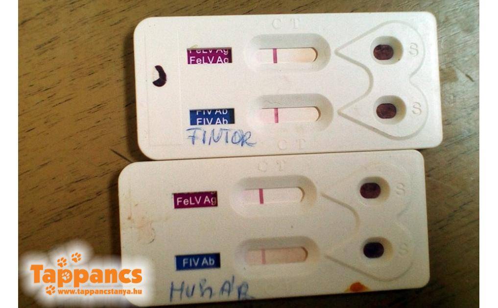 Csütörtökön fellelkesülve (nem volt aktuálisan oltásra váró cica), gondoltam a két szoba legrégibb lakóját fogjuk leszűretni ismételten FIV/FeLV gyorstesztre. Mivel ők azok, akik minden bentlakó, átutazó cicával érintkeztek, képzeletemben Huszárt és Fintort teszteltük. Huszárban biztos voltam, mivel ő cuki annak ellenére, hogy kicsit néha még velem is félős, de Fintort rábíztuk a szerencsére. Lesz, ahogy lesz, de ahogy végiggondoltuk, hogy vagy ő, vagy a rajta kívül régóta bent lévő cirmosok, Táncos és Csipisz az esedékes, még mindig Fintor tűnt a legvalószínűbbnek. Huszár gyorsan túl is esett a macerán, ügyes volt és bátor. Majd jött a nagyszoba. Macskavadászatra egyedül indultam, mert a fiúk amint meglátják a doktor urat, átváltanak sprinterbe! De nagy örömömre Fintor a fonott hordozóban volt, ami a törzshelye, így könnyen rácsukódott az ajtaja és kint is termett. Nagy szusszanás után már az asztalon volt és ódákat tudnék zengeni, mennyire büszke voltam rá, hogy mindenféle tiltakozás nélkül, egy morgás, egy megugrás nem volt, csak gyors véradás. Közben belenéztünk a fülébe, szájába ha már ott volt és mehetett is vissza zugába, majd be a szobába a polcra. A kő is leesett szívünkről, mindketten negatívak továbbra is.
