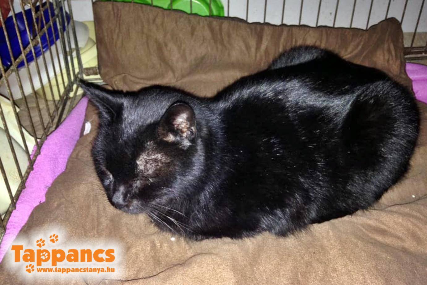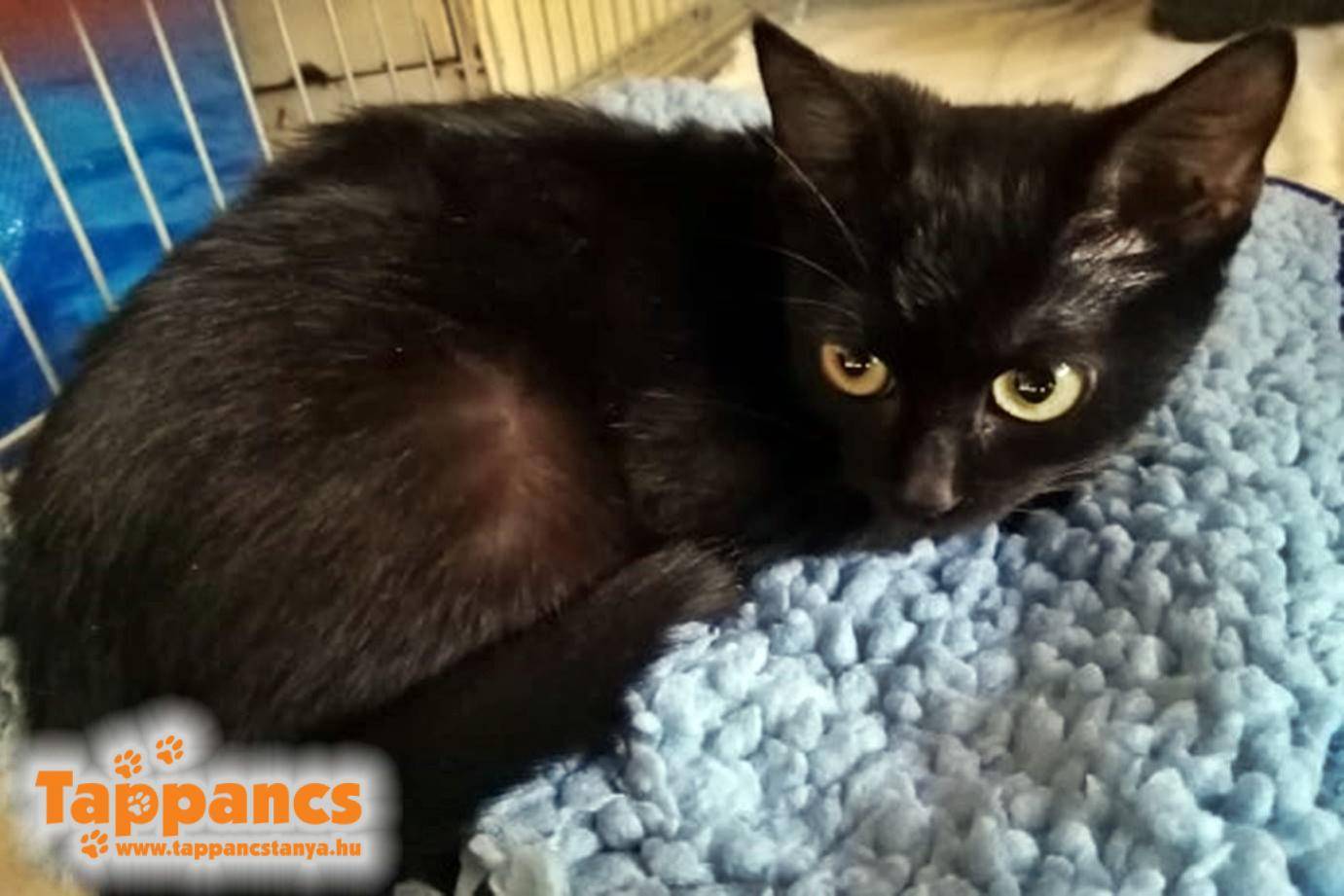 Újabb fekete szépséggel lettünk többen. Az aprócska cicalány a hideg beálltával egy lakás küszöbén keresett menedéket. A család megsajnálta a cicát és saját két cicájuk mellé befogadták ideiglenesen. Náthás volt, állatorvoshoz hordták saját költségükön, amit ezúton is köszönök! A nyakán volt egy csomó, ami magától kifakadt, nem igényelt külön kezelést. Viszont a köhögése csak az antibiotikum kúra alatt szűnt meg, ahogy abbahagyták a gyógyszerezést, újra és újra visszatért. A család a Kóbor nevet adta a most kb. 5 hónapos kicsilánynak, de hosszas ismerkedés, barátkozás után a Gülüke név villant be, így nem kizárt, hogy előbb-utóbb két nevű lesz a kis cukiság.