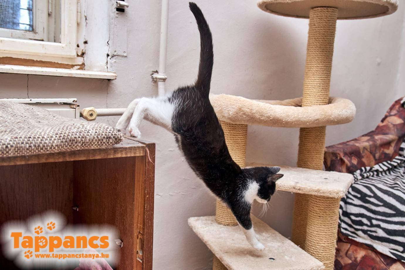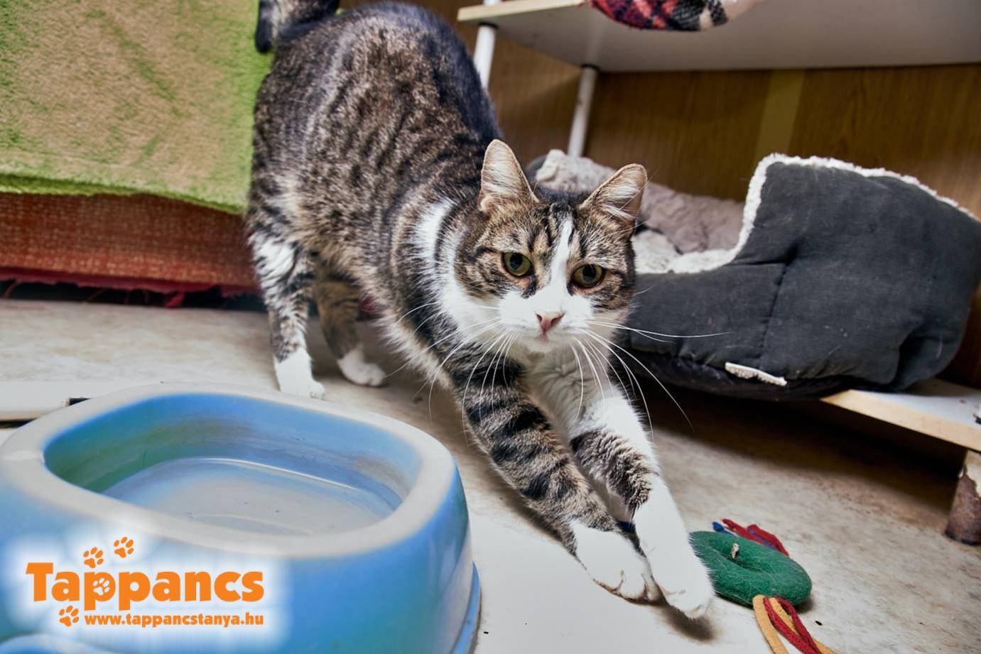Pöszmet helyére megérkezett új lakónk, Bagi. Őt Boginak hívták eddig, de kandúr lévén némi módosítást éreztünk szükségesnek. Bagi egy nagyon helyes, jó természetű kb. 9 hónapos kandúr, aki egy idős néni udvarában látta meg a napvilágot. Ajándék cica volt testvérével, mert a néni nem sokkal születésük előtt kezdte el etetgetni az odacsapódott anyamacskát. Tesóját nem tudták befogni, mert megérezte, hogy valami készülőben van, ezért eliszkolt, de Bagit sikerült egy takarmányos zsákba csomagolni. Kolléganőm Icuka nem kis meglepetésére, egy levegőtlen nylon zsákból egy nagy cica bukkan elő. Szó mi szó, Bagi megérkezett és azonnali hasmutogatásával levett minket a lábunkról.