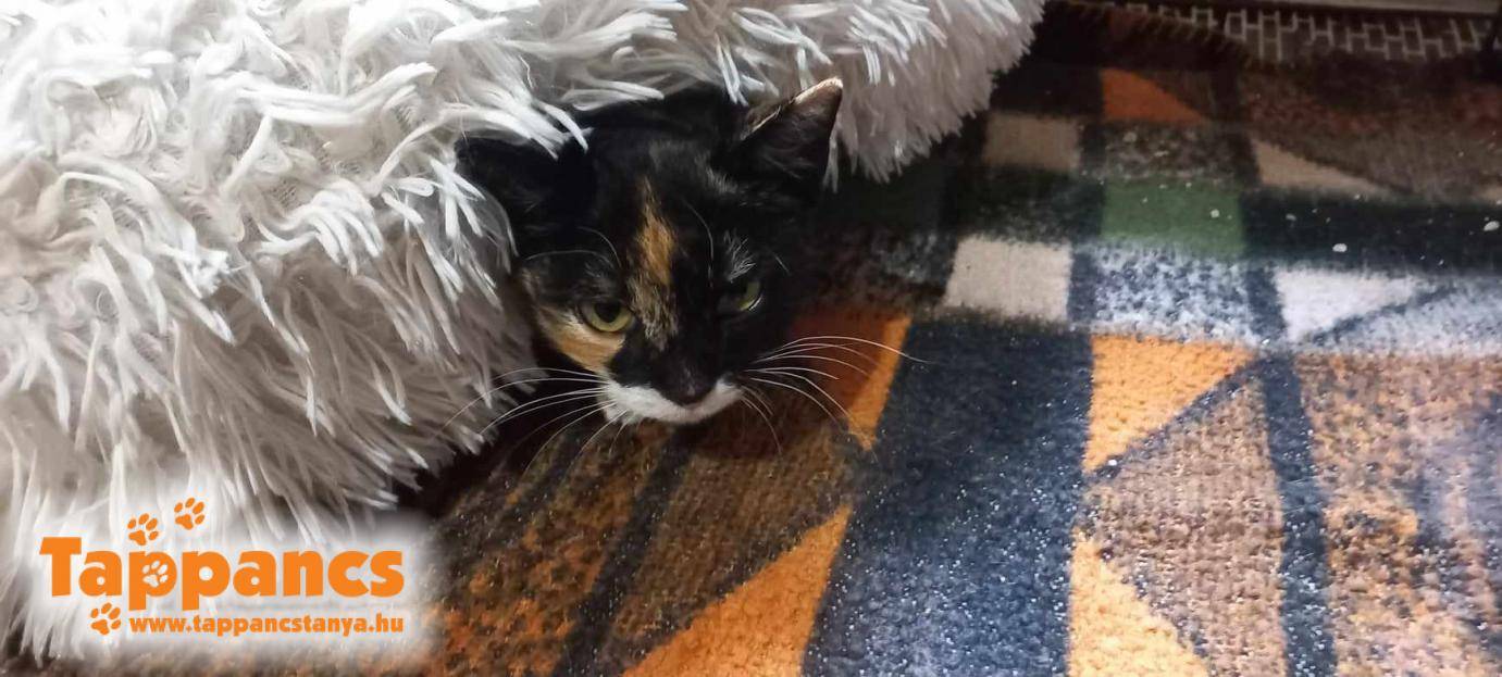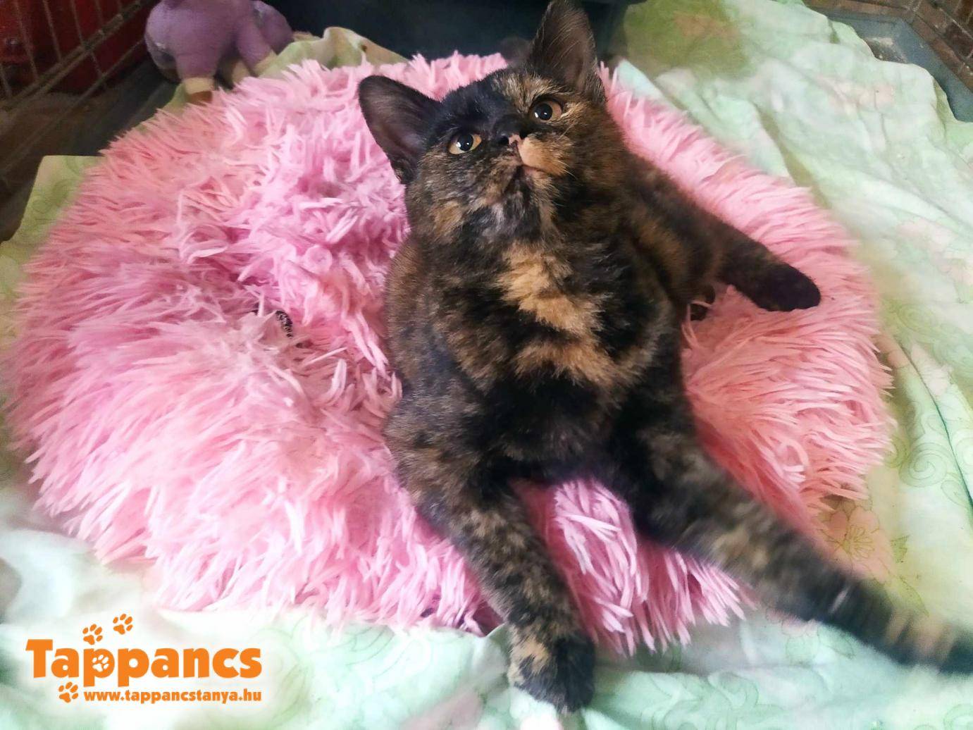 Megérkezett egy teknőctarka cicalány, ki várólistán szerepelt, de az életkörülményei olyanok lettek, hogy muszáj volt kimenekíteni. Röviden csak annyi, hogy nagyon rossz körülmények közé született, és aki támogatta a beszámíthatatlan "gazdikat", felkarolta az árván maradt kiscicát. Olyan penetráns szaga volt, amit nem is tudok körülírni, tele bolhával, így lett a neve Bébé. (ami a büdösbogár, vagy brutál bolhás jelzőkből alakult) Bébének fogalma sincs a rosszindulatról, ő mindennek örül, és mindenért nagyon hálás, egy igazi örökmozgó.