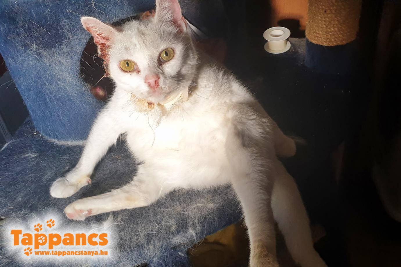 Elérkeztünk Péntek műtétjéhez. A tudat, hogy vagy-vagy már kellő ideggel telítette a gyomrunkat. Abban a tudatban voltunk, hogy azon múlik, mennyire erős, úgyhogy mi aztán mindennel erősítettük, amivel csak tudtuk. Étvágya kiváló volt, úgyhogy etettük is bőszen finomságokkal, hisz a műtét napján úgy sem tud, és utána is ki tudja milyen állapotban lesz, az a biztos, ha van tartalék. Már előtte pár nappal megkezdtük az antibiotikum kúrát, hogy a szervezete már vegye fel a harcot minden ellen. Egy kis szobácskát készítettünk neki, ahol tud lábadozni a megszokott helyén, ám mégis nyugalomban. De Péntek nem tért vissza... Arra nem számítottunk, hogy daganata akkora mértékű, hogy már a koponyáján is túl jutott, az agyát is érintette... Icu dolgozott aznap, és mikor telefonon felhívott, hogy elmondja a hírt... Na ilyenkor van az, hogy nincsenek szavak, és csak csendben sírtunk. Miken ment keresztül, micsoda fájdalom lehetett, de soha eszünkbe sem jutott volna, hogy ekkora a baj. Sok állatorvost megjárt, és mikor kiderült, hogy daganat és műteni kell, meg sem fordult a fejünkben ez a végkimenet. A rendelőben is vagy egy órás műtét után tárták fel jobban a buksiját, és hozták meg a döntést, hogy el kell engedni Pénteket. Nagyon erős cica volt, példaértékű méltósággal és élni akarással viseltetett minden akadályt, és újra és újra jókedvűen, szeretettel tudott fordulni felénk. Hiánya még mindig felfoghatatlan!