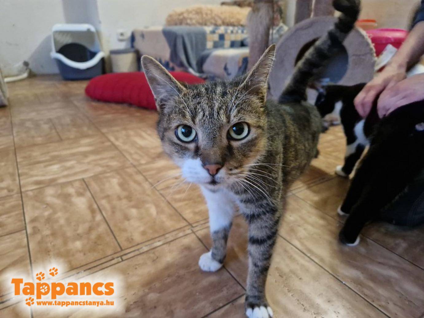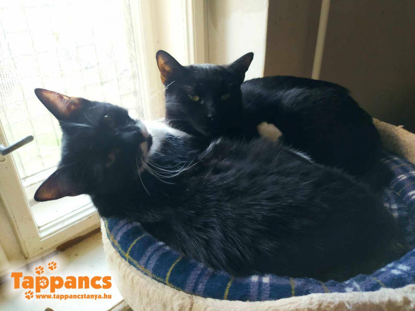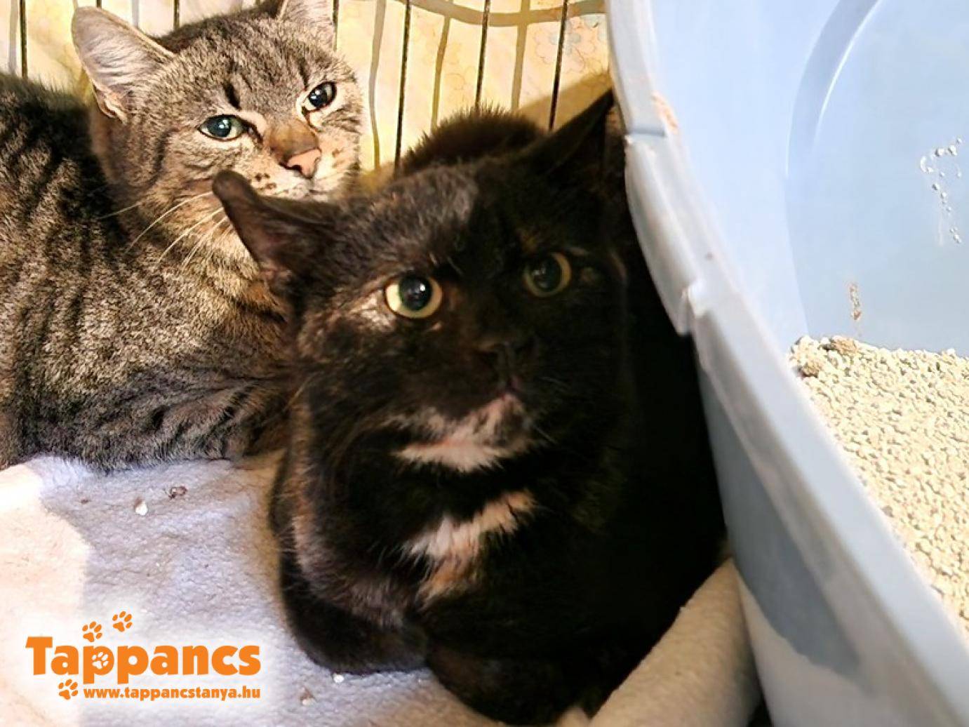 Várólistáról fogadtunk két cicát, kik egy kolóniában éltek többedmagukka. Valaki kegyetlenül lemérgezte a kolónia többi tagját. Ők vélhetően épp nem tartózkodtak a közelben, mikor a merénylet történt. A fiatal süldő cica is beteg volt, de őt sikerült etetőjének időben orvoshoz vinni, és megmenekült, felépült. Egyelőre ahogy bekerültek a szobakennelbe, nagyon meg vannak rémülve, támadólag lép fel ellenünk a nagy cica. Nem tartjuk kizártnak azt sem, hogy anya-lánya párosról van szó, hisz nagyon védelmezi a kicsit. Reméljük hamar elnyerjük a bizalmát, mert így kissé félelmetes bent ténykedni a ketrecükben. A felnőtt, 2-3 év körüli nőstény cica Pompa nevet kapta, a picurka, fél év körüli teknőctarka cicalány pedig Pilár névre lett keresztelve általunk.