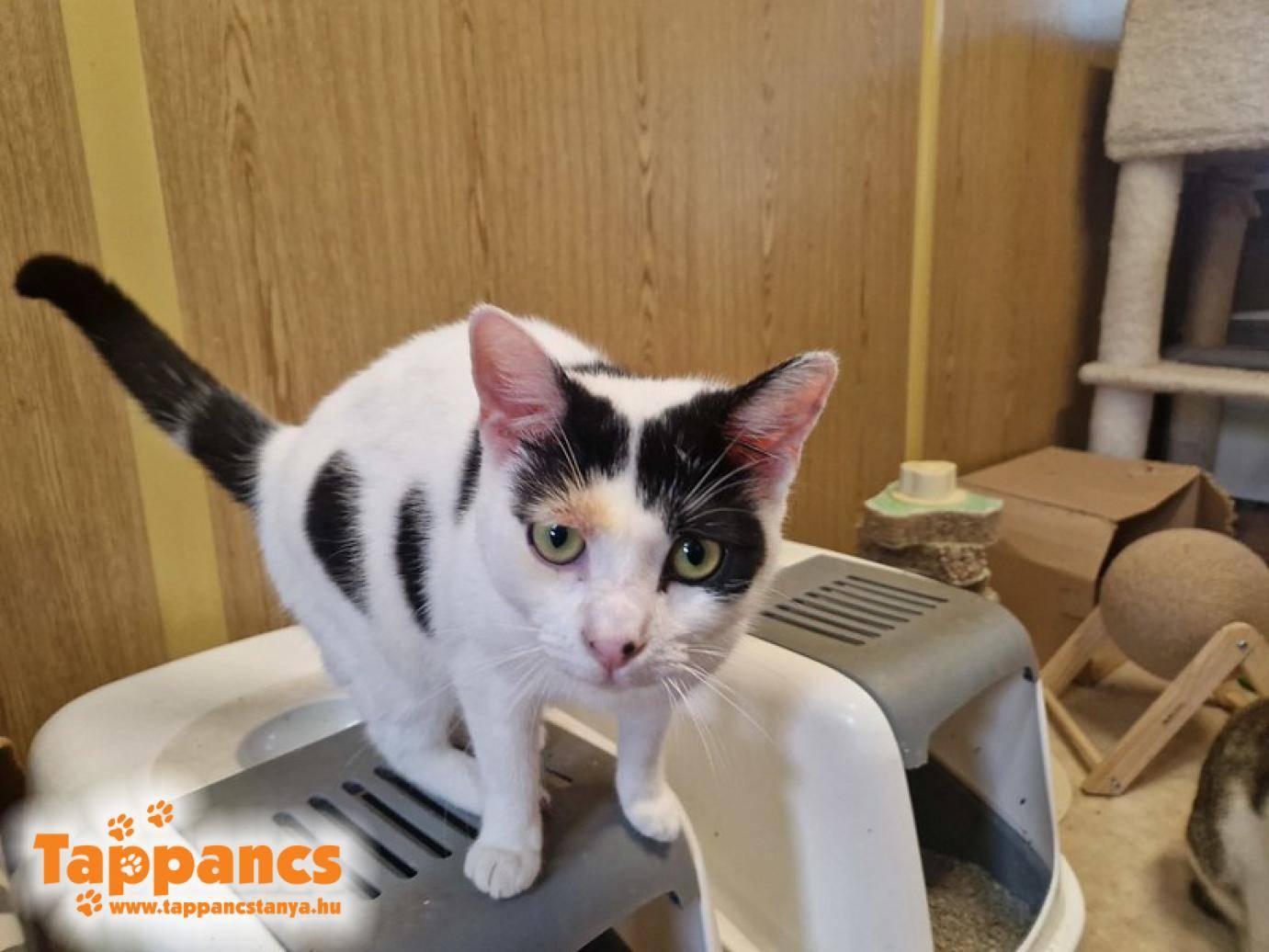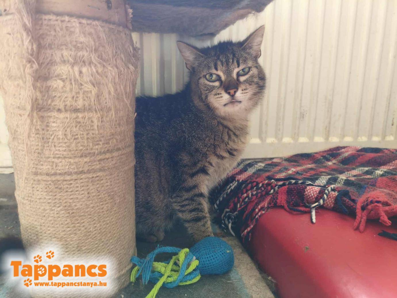 D.C. szeme alatt kis sebszerű képződmény alakult ki, amit lekentünk betadinnal, kék krémmel, hisz azt hittük valami sérülés. Ám vakarta és a kenegetés sem volt ínyére. Nyilván nekünk sem volt a kedvenc elfoglaltságunk, hisz közvetlen a szeme alatt volt, nagyon óvatosan kellett kencézni. D.C. pedig nem az a türelmes fajta cica, neki mindig dolga van, menni kell. A lényeg a lényeg, hogy elküldtük Dr. Tímár Endréhez őt is szemkörnyék vizsgálatra, ha már arra tartottak az állatok, hogy derüljön ki mi az, amit néha sikerül neki véresre kaparnia. A doktor úr megállapította, hogy gomba, kapott is egy injekciót rá. Teljes kétségbeesésünkben, hogy honnan szedte össze, mikor állandóan fertőtlenítőben úszunk, ha egyik szobából, helyiségből a másikba megyünk... Arra a döntésre jutottunk, hogy akkor felvisszük a felkészítő szobába, mert az örökbefogadó lakrészen vannak macerásabb cicák, akiket nem tudnánk gomba elleni krémmel kenegetni, ha netalántán jelentkezne rajtuk. Úgyhogy D.C. berobbant a felkészítő szobába. Ő nem az a nagyon bújós más cicákkal, meg ott éppen csak három cukker fiú van, kevesebb a kockázata, hogy elkapják. Valamint csírájában lett elcsípve, úgyhogy biztos gyorsan túl lesz rajta.
