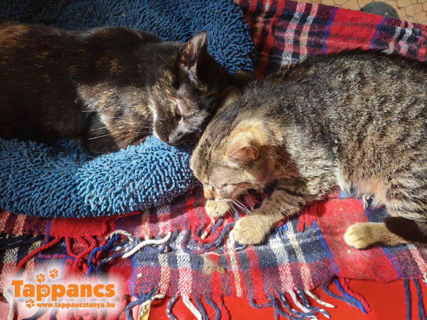 Vettünk egy nagy levegőt, mert ez tarthatatlan állapot és vállalva, hogy Pompa megpróbálja bevédeni hisztis kölykét (amit elkülönítve nem csinált természetesen), Pilárt visszaraktuk mellé. Szüksége volt rá, mert ahogy a kis lurkót meglátta, már felragyogott a szeme, és üdvözölték egymást, dugták össze a buksijukat. Utána Pilár körbenyalogatta anyja fejét, így visszaállt a világ rendje! Igaz, nehezen még a szuttyogástól, de délután nekiállt falatozni a kicsilány társaságában, és szemmel láthatóan minden nappal jobban nézett ki. Mi pedig folytattuk a trükközést, ha eljött Pilár kencézésének ideje...