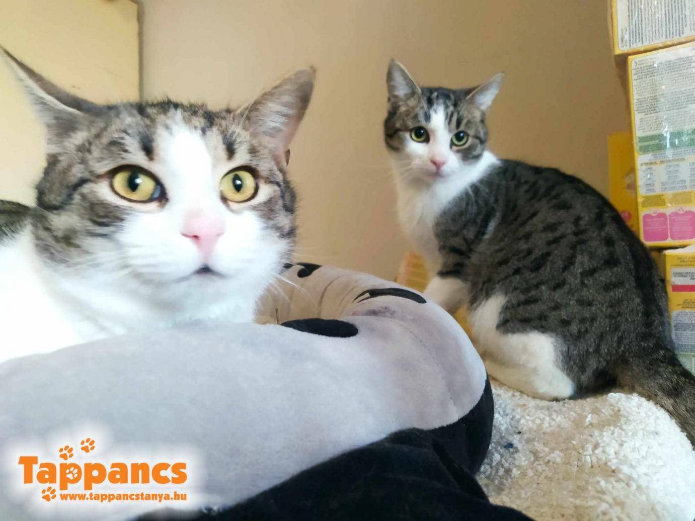 Először Herkules költözött át a felkészítő szobába, majd csatlakozott hozzá öccse, Homér is. A kandúrok már igencsak megszerettek minket, Homér még kicsit bátortalanabb, de Herkules még az élelmet is képes otthagyni, csak tekergőzik körülöttünk simogatásért. Hatalmas fejével öklel fel minket, hatalmas elánnal tud szeretni! Már megértek arra, hogy kiköltözzenek, és az új cicák nagyon kedvesek voltak számukra, ám az új hely annál ijesztőbb... Pár napig meghúzták magukat a fotel, kanapé mögött, majd elkezdtek kimeszészkedni, és rájöttek, hogy hiába új szoba, a gondozóik a régik, akikhez lehet bújcsizni ezerrel. Emellett több inger éri őket, több a játék adta lehetőség is, amit aztán nagyon szeretnek.