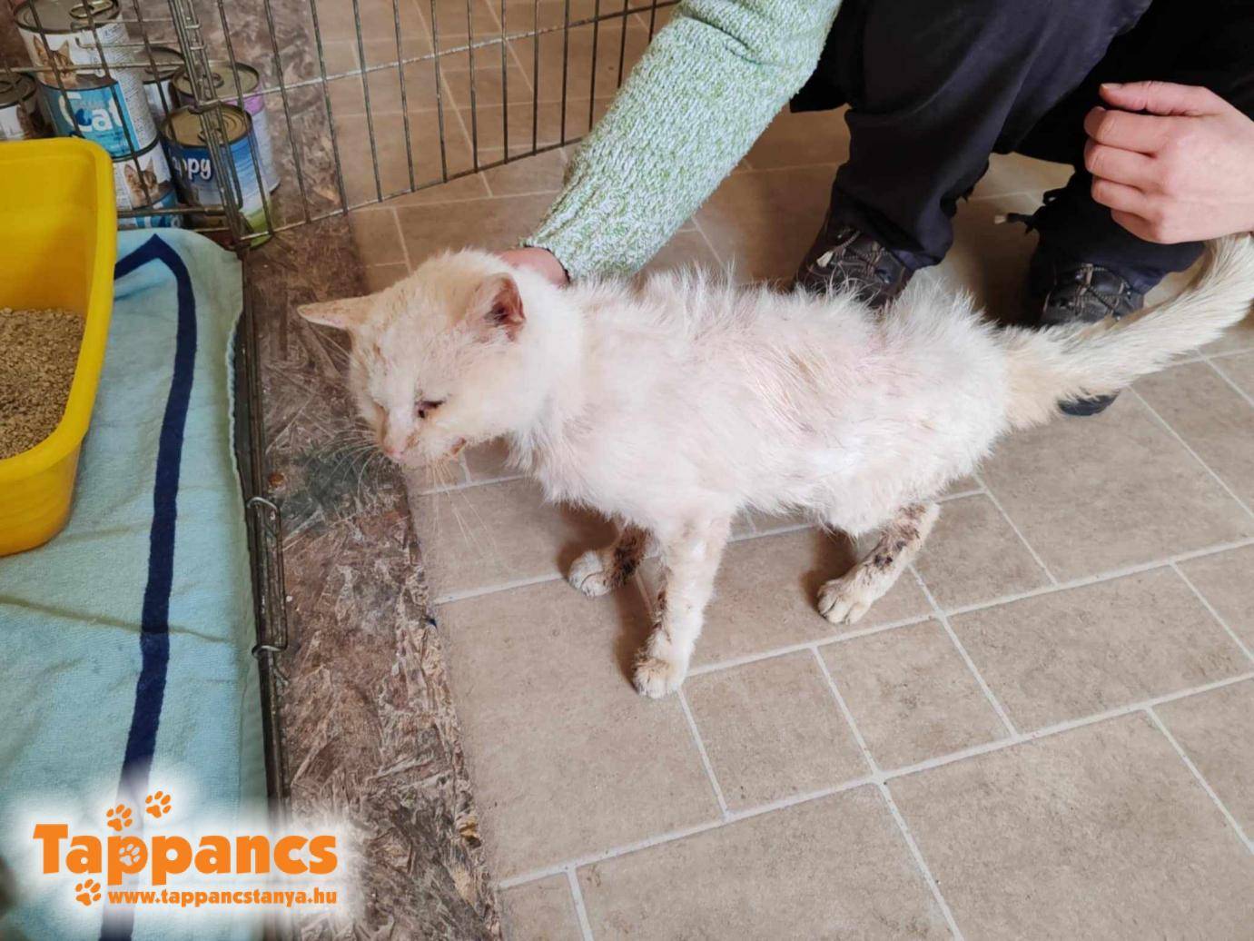 Frissen beérkező cicánkat is megnézte, ki Dorozsmáról érkezett a délelőtti órákban. Ez a fehér cicalány már hónapok óta "terrorizálta" a környék cicáit és lakóit. Gazdája tavaly elhunyt, így a szomszédoktól kuncsorgott élelemért. Szerencsétlen annyira ki volt éhezve, hogy képes volt elzavarni a saját cicákat is az ételtől. A téli időszakban egyre rosszabb állapotba került, náthás is lett, valamint a szőre is nagy foltokban kikopott, így sürgőssé vált a bekerülése. Doktor úr előírt számára egy antibiotikum, vitamin kúrát az immunerősítés mellé, mert tényleg nincs jó formában a leányzó. Nem is fiatal, csont és bőr, valamint szőre is alig van, szuttyog, szörcsög, ellenben az étvágya és a hangereje kifogástalan szerencsére. A Néda nevet kapta tőlünk.