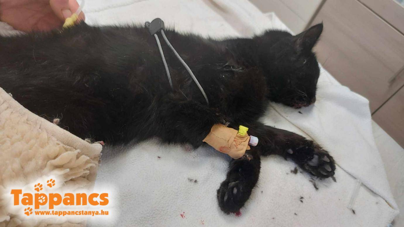Önkéntesünk, Rita kért segítséget egy rossz állapotú cicához, akivel munkahelyén találkozott. A cica orrából, szájából folyt a vér, arra gyanakodott, hogy baleset érte. Közben begyűjtötte és estére elszállásolta, melegítette és próbálta kitisztítani a száját, orrát, hogy könnyítse a légzését. Reggel korán megérkezett vele a menhelyre, akkora már a cica alig mutatott életjelet. Lilivel egyeztetve azonnal kocsiba ült és robogott ki a menhelyre, kapott infúziót hirtelenjébe, és amint eljött az idő, már robogott is vele a Vezér Állatorvosi rendelőbe, hogy nyitásra odaérjenek. Már így is kritikus volt, hogy egyáltalán túléli-e az utat Bonifác. Szerencsére gyorsan tudták fogadni, és infúzióra kötötték. Kis idő után már elkezdett mozgolódni. Melegítőre helyezték Bonit, akit ott kellett hagyni, hogy a későbbiekben alaposan kivizsgálják. Nyelvén kifakadt tályog okozta a vérzést, valami maró folyadékot nyelt be, ami teljes rombolást okozott a szájában, a nyelőcsövén, sőt a lecsepegő anyag a lábain is hagyott nyomot. Egyik napról a másikra reménykedünk csak, hogy erősödik. A rendelőben töltötte a napjait, szinte állandó kontroll alatt. A testhője is lassan emelkedett, 33,5 fokról indult....
