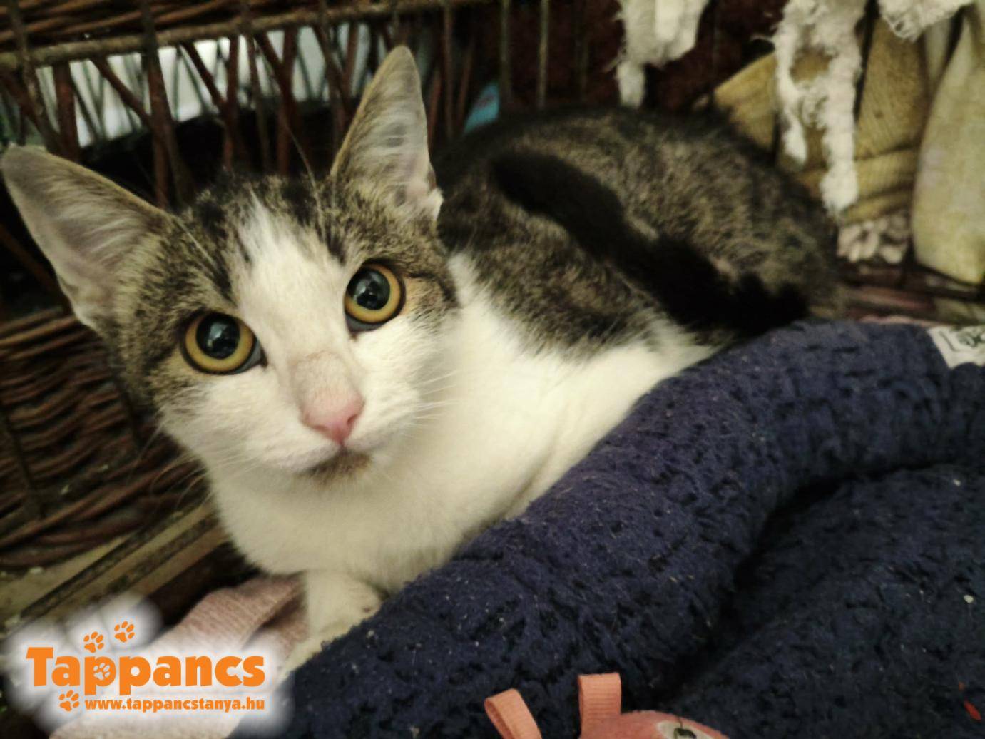 Pár napja fel-feltűnt egy süldő macska a menhely tápos raktára körül. Gondoltuk, hogy valamelyik tanyáról slattyog át nézelődni, de rajta kaptuk, hogy az elszóródott pár szem kutyakaját porszívózza. Majd odáig fajult ez a nagy bátorság, hogy napközben a kutyák kifutója előtt bóklászott. Felettébb veszélyes mutatványnak bizonyult a bátorsága, így jobbnak láttuk felállítani az élőcsapdát, mielőtt baj érné, ha már tanyát vert a menhelyen. Az élőcsapdába illatos nedves eledelt tettünk, és pár perc után már mehettünk is érte, mert a kicsilány rettentő éhes volt. Az sem zavarta, hogy lecsapódott az ajtaja, jóízűen falatozta belefelé az eledelt. Nem tudjuk ki fia-borja, és hogy került oda, de már biztonságban van. Kb. 5-6 hónapos leányzó a Harper nevet kapta tőlünk.