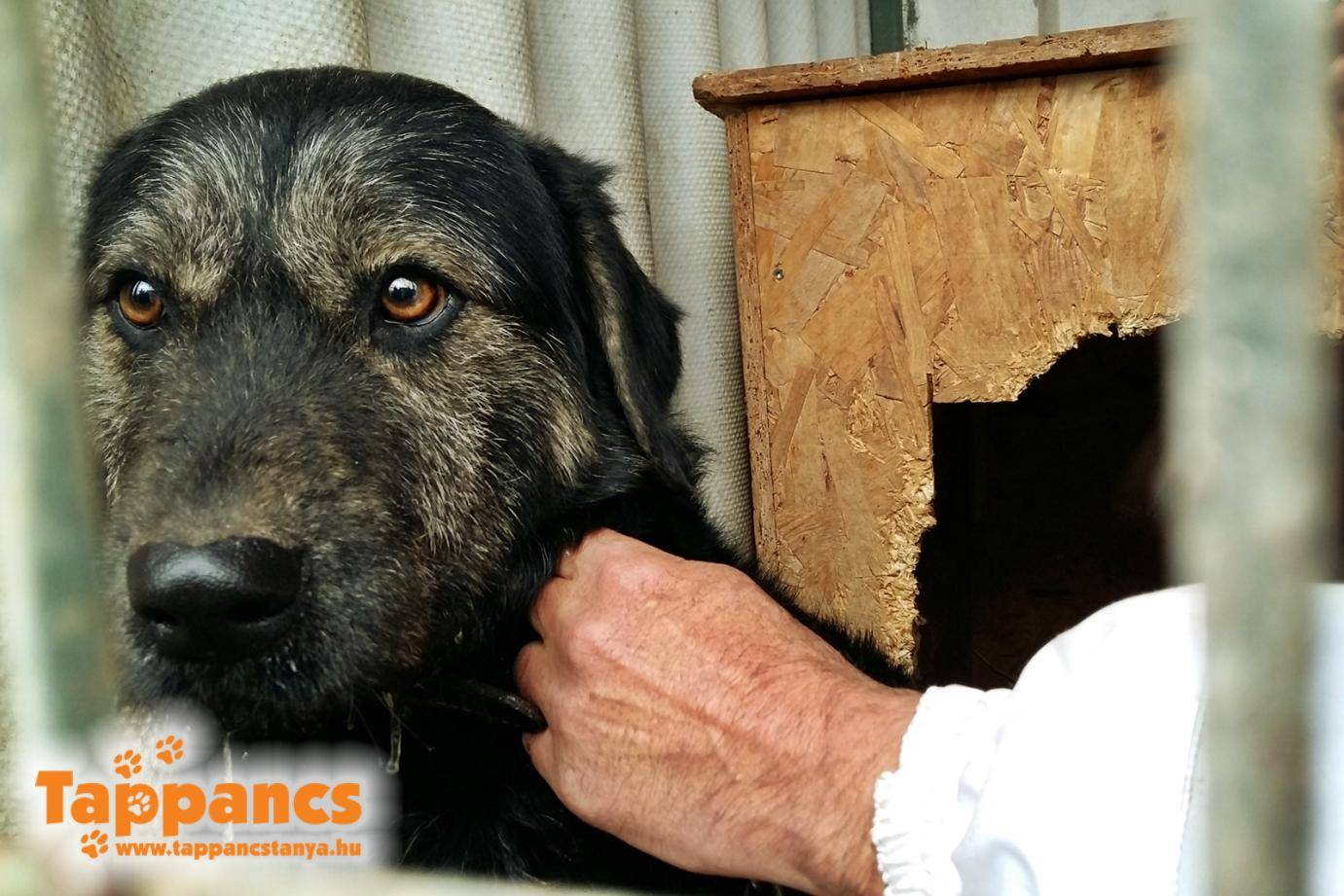 A bekerülő kutyák közül legjobban talán Farkas volt megrémülve, akinek még egy méretes darab láncot is le kellett vágni a nyakából. Nem elég, hogy új helyre került, vadidegen emberek közé, még mindenféle szerszámmal matattunk, hogy megszabadítsuk a tehertől. Ő pedig csendben, félve csak tűrt, és tűrt...