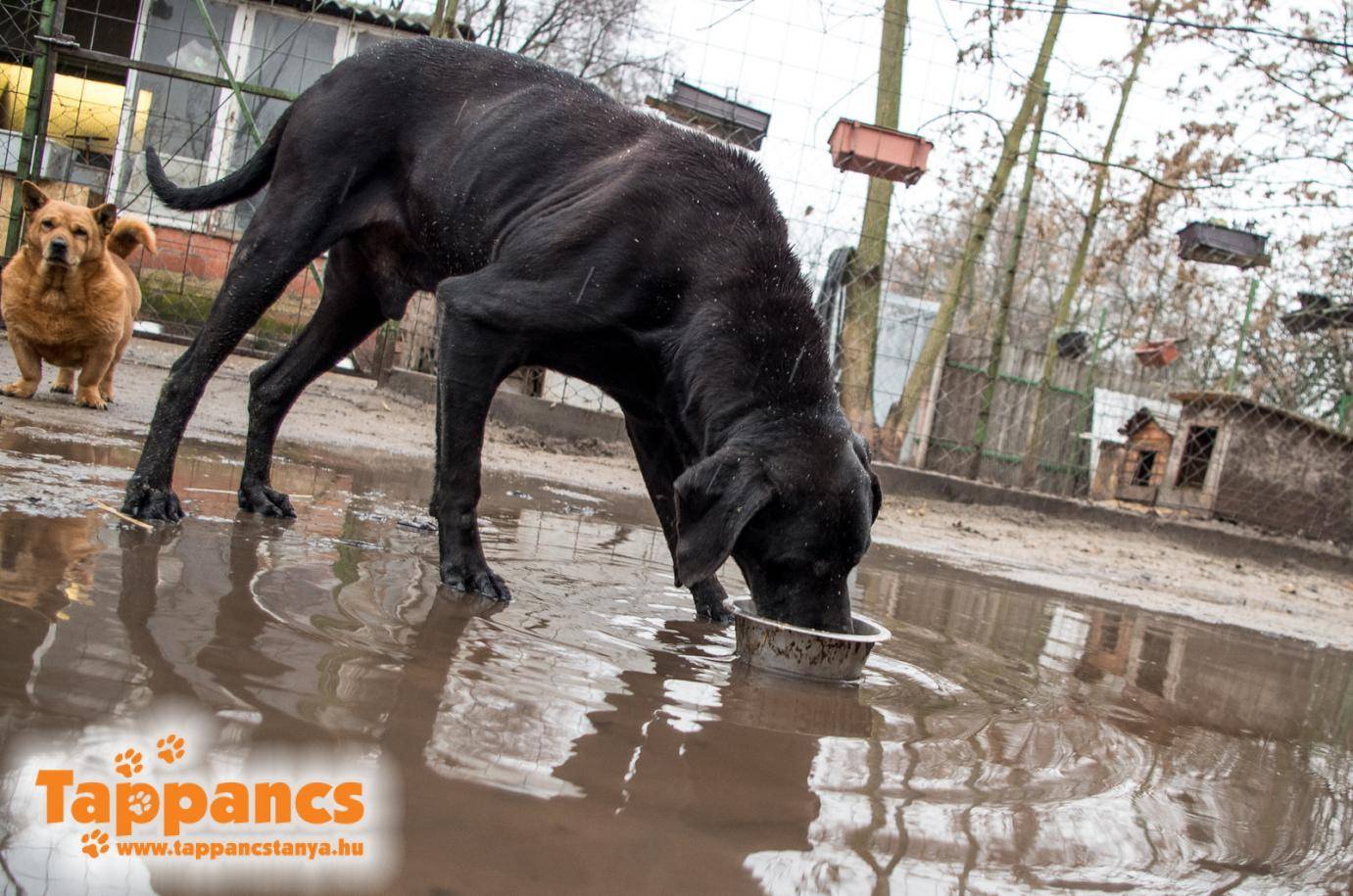 A hétvégén ismét elképesztő állapotok uralkodtak a menhelyen: az eső úgy szakadt, mintha dézsából öntötték volna, és mondanom sem kell, hogy mi is bőrig áztunk. Az összes futtatóudvar víz alá került, a gondozóknak kis csatornákat kellett ásniuk, hogy valamennyire elszivárogjon a víz az udvarokból, de ez sem hozott átütő sikert, ugyanis már nem volt olyan hely, ahová el tudott volna szivárogni.