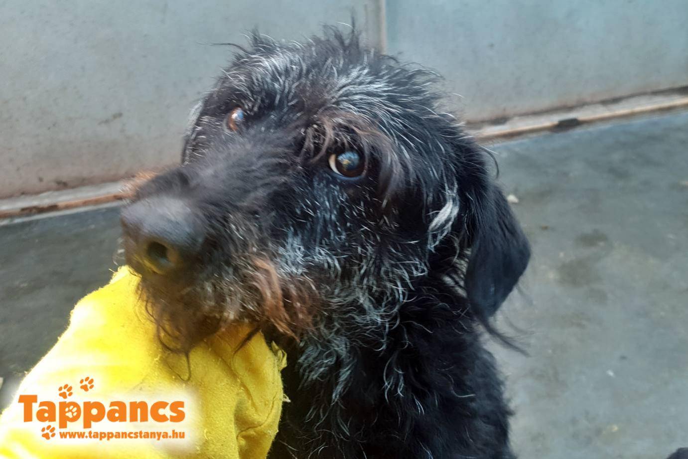 A kiskutya egyébként iszonyatosan férges, alultáplált, és jelenleg eléggé félénk is. A Trixi nevet kapta tőlünk.