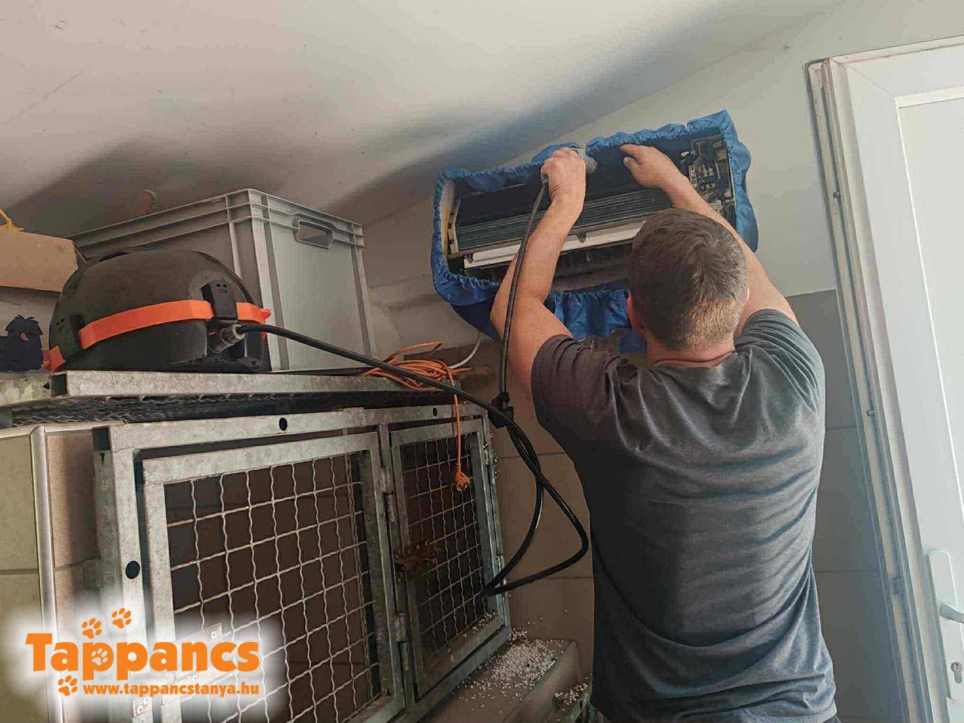 Földi Balázs nem akármivel lepte meg a menhelyünket. Teljesen ingyenesen kitakarította a menhelyi klímákat, hogy a nagy melegek beköszöntével a beteg kutyák továbbra is biztonságosan lábadozhassanak a hűvösben. Köszönjük neki a nem mindennapi felajánlást!