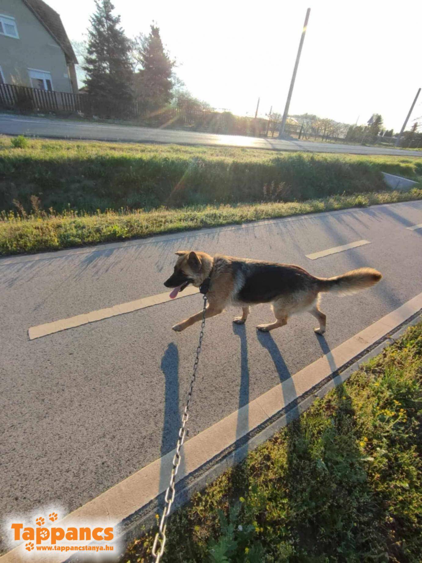 Segítségkérő telefont kaptunk, miszerint a Bordányi úton, Subasa körül találtak egy németjuhász kutyát, aki ott rohangál az utók között. Ha ez még önmagában nem volna elég, egy termetes láncot húzott maga után…