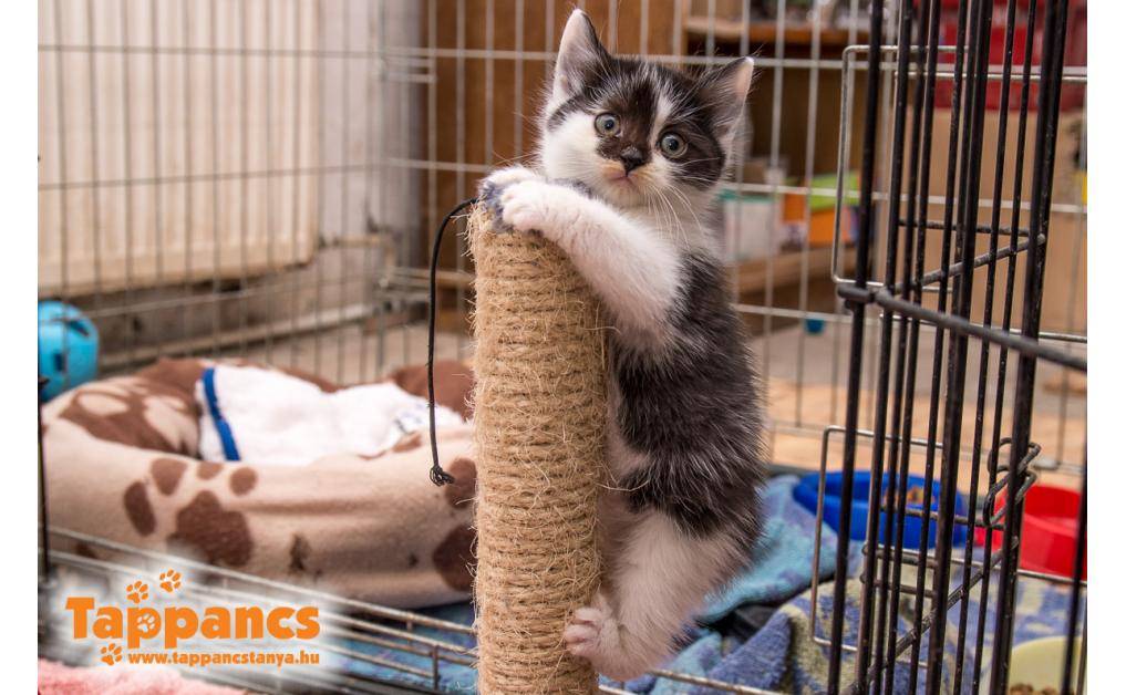 Ideiglenes befogadótól került be a menhelyre anyjával (Hiszti), és testvérével (Havas). A megtalálók egy forgalmas autóút mellett lettek figyelmesek egy dobozból kiugró cicára, mikor közelebb mentek, döbbenten látták, hogy 8 macska volt bepréselve a dobozban, közte több kölyök cicával.