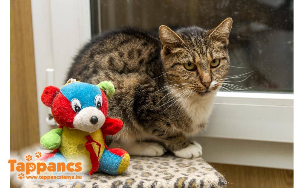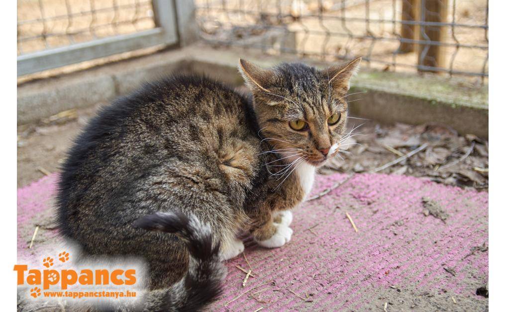 Tápéról, egy idős nénitől került be kölykeivel. Léna egyszer csak megérkezett az udvarába ahol élelmet kapott, így ott maradt és megajdándékozta a nénit kölykeivel. Aki rájött, hogy kis nyugdíjából nem tudja finanszírozni a családot és a várható utódokat, ezért kérte segítségünket. FIV/Felv teszt negatív.