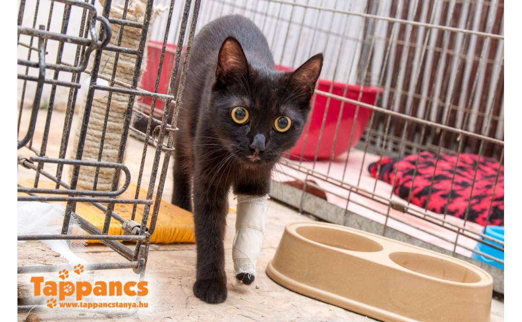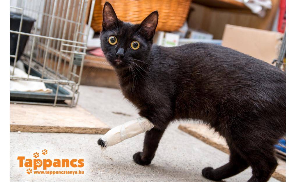 A Gáspár Zoltán és Gáz u. sarkán lévő telefonfülke mellett feküdt, mozdulatlanul a vérében. Telefonon kaptuk a segítség kérést, kolléganőnk munkába jövet felvette, orvoshoz vitte, ahol gyorsan ellátták. A száján a bőre felszakadt, lábát fájlalta. Később a röntgen kimutatta, hogy 2 helyen törött is. Közben meglett a gazdija is, aki a 2 hét veszettségi megfigyelés után haza viheti.