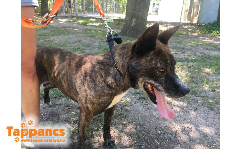 Szatymazi tanyavilágban kóborolt. Az embereket nagyon szereti, viszont más kutyákkal nem igen jön, és hogy őszinték legyünk, macskatesztre sem vinnénk. Ha sétáról van szó, akkor nehéz felkelteni a figyelmét, behúzzák a szagok, az új környezet, de egyébként figyelmes, tanulékony.