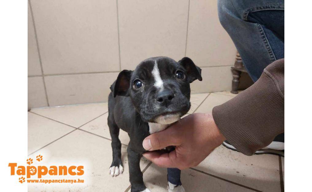 Egy hölgy a Sándorfalvi úton találta, aki 3 nap múlva segítséget kért egy másik hölgytől. Ő elvitte állatorvoshoz a kutyust, végül pedig gondozásunkba került.