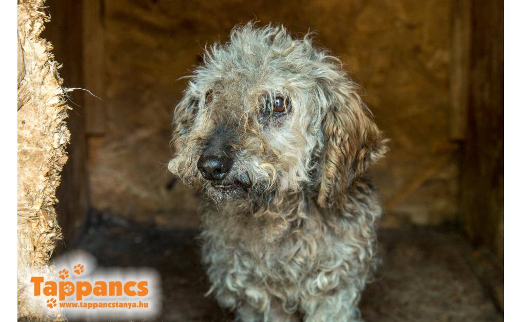 Bogyó gazdája meghalt, így sajnos csak a menhely marad számára. Bogyó nehezen viselte kezdetben az új környezetet, de szerencsére már elkezdett nyitni a gondozók felé.