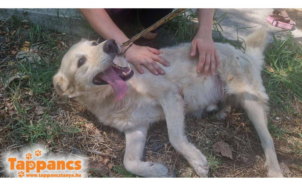 Domaszéken találták, de nagyon félénk volt. Egy állatbarát hölgy etette, ismerkedett vele, és mikor már elég bizalmat szavazott, megfogták és bekerült a menhelyre. Chipje nincs.