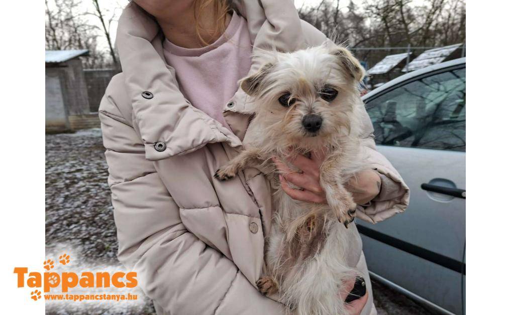 Kiskunfélegyházánál ugrott egy nő autója elé. Hazavitte, megfürdette és chipet is kerestek benne, de nem volt, végül önkéntesünk a menhelyre szállította.