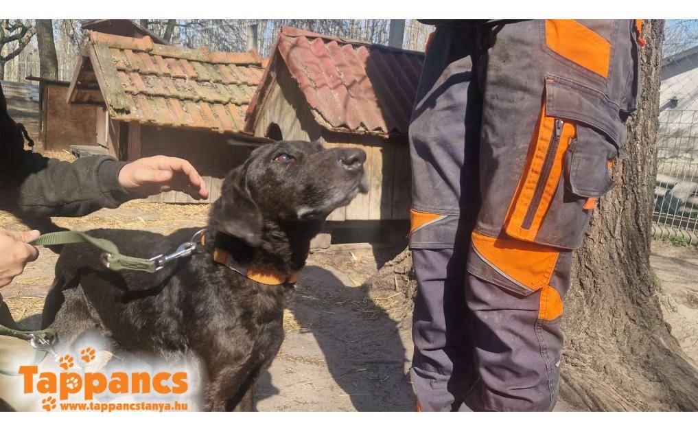 A Vasúti telepen találták, egy kis időre elhelyezték, de mivel nem jelentkezett a gazdi, behozták. Chipje nincs, nyakán azonban a kikopott szőr, amiből arra következtetünk, hogy láncon tartották. Sanyi elképesztően jó fej, mindenki szereti. Bújós, figyelmes, és a többi kutyával is kijön. Ugyanakkor mókás is, amolyan mindig a napos oldalát nézi az életnek. Sajnos az ég nem áldotta meg különleges külsővel, így nehezek az esélyei, bár szerintünk így is gyönyörű!