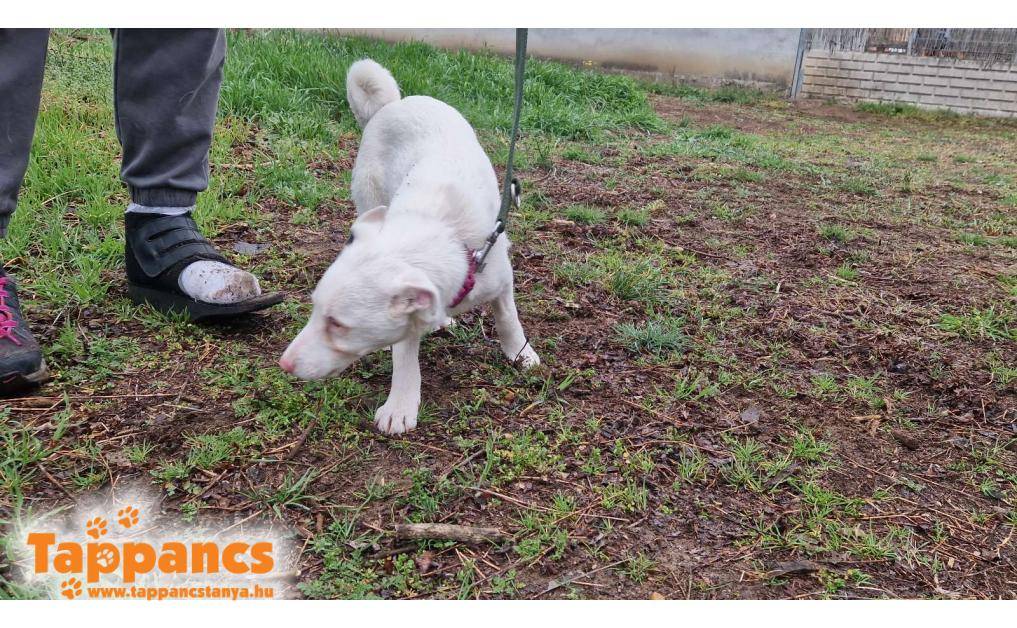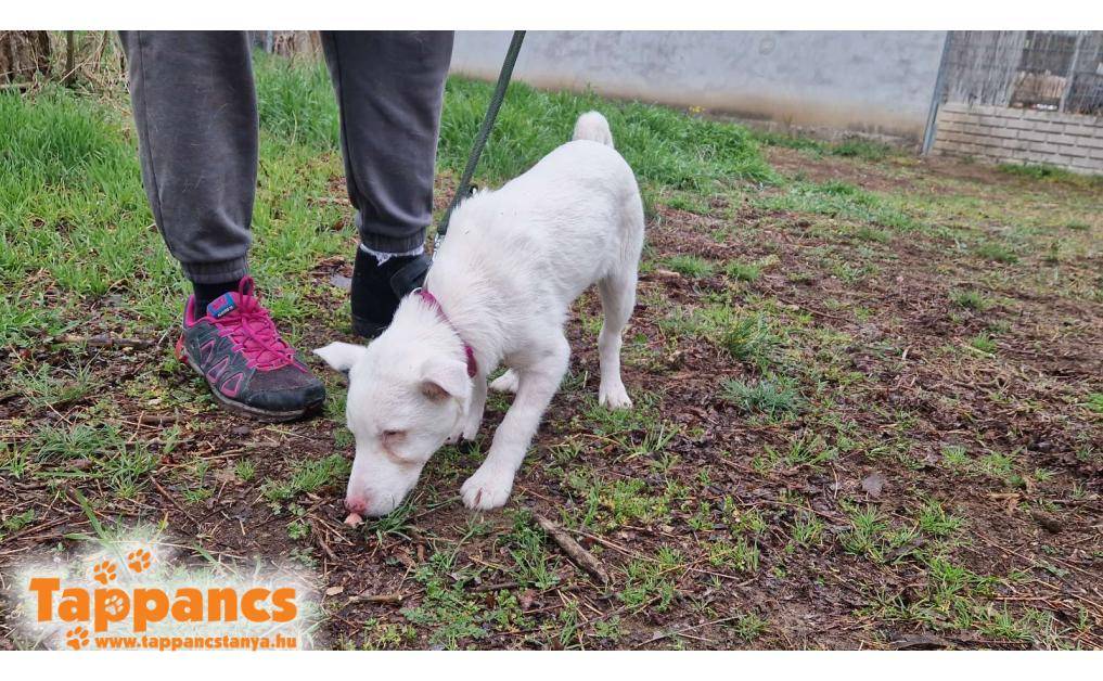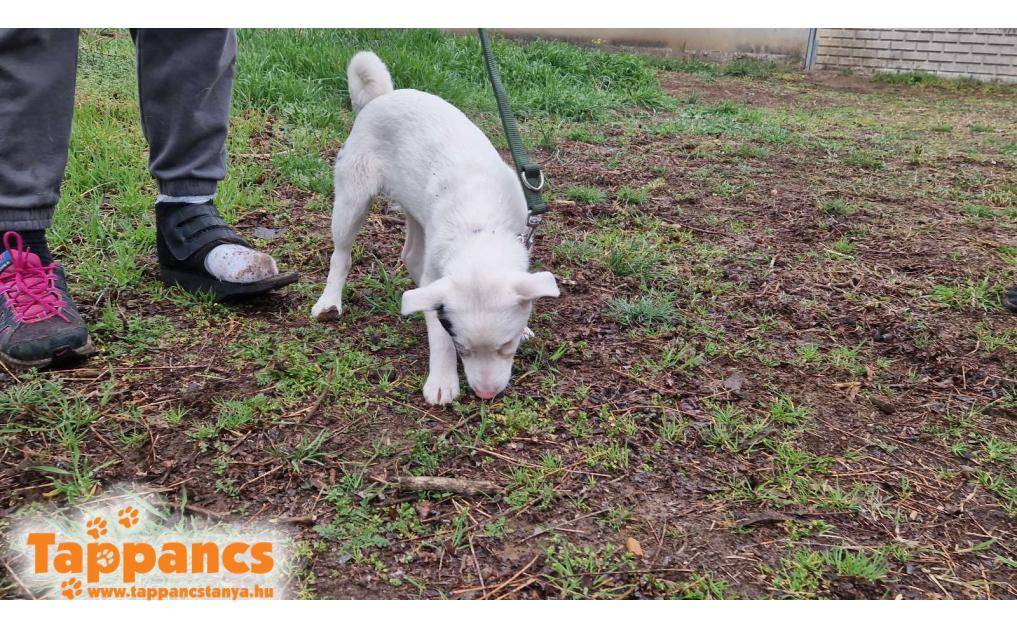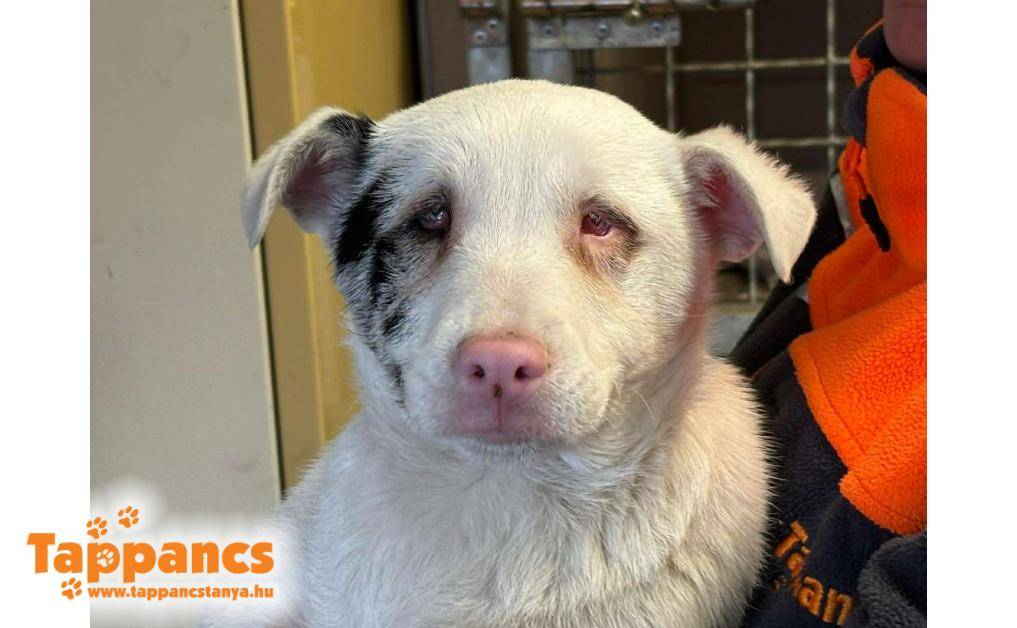 Balástya és Zsombó között az autópálya lehajtónál bóklászott. Vaknak és süketnek tűnik, így szegény nagyon meg volt ijedve. Miután bekerült járt állatorvosnál, és lehet, hogy csekélyen, de hall valamennyit. Bekerülése óta megismeri már a gondozókat, és igazi kis rosszcsont kölyök lett belőle.
